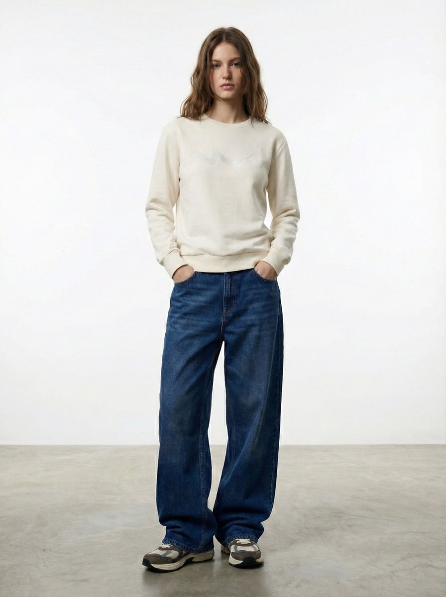 Uzun Kollu Sıfır Yaka Sign Baskılı Bej Sweatshırt