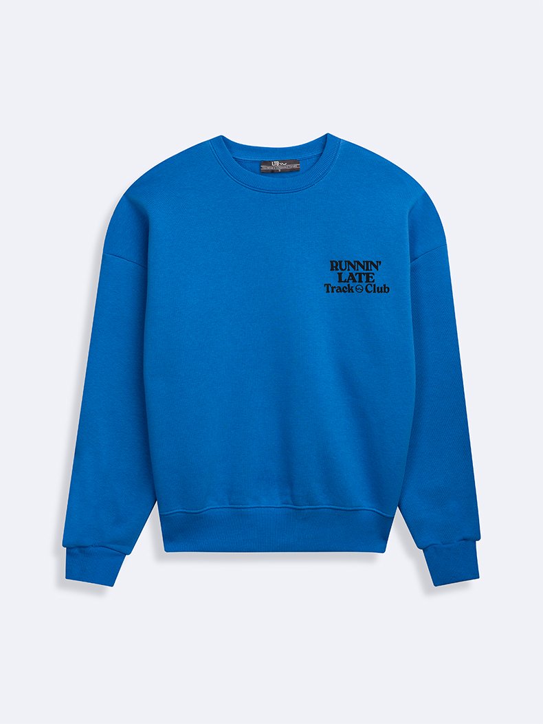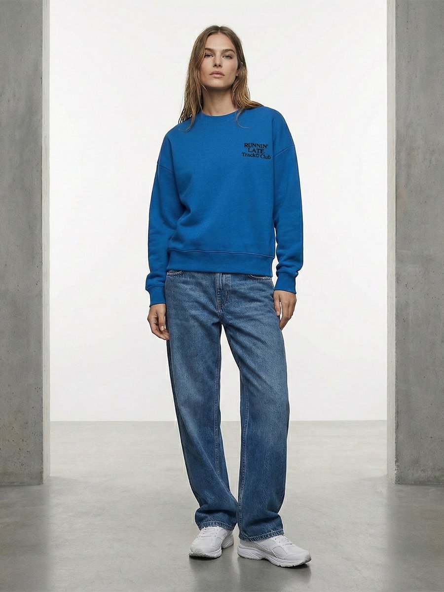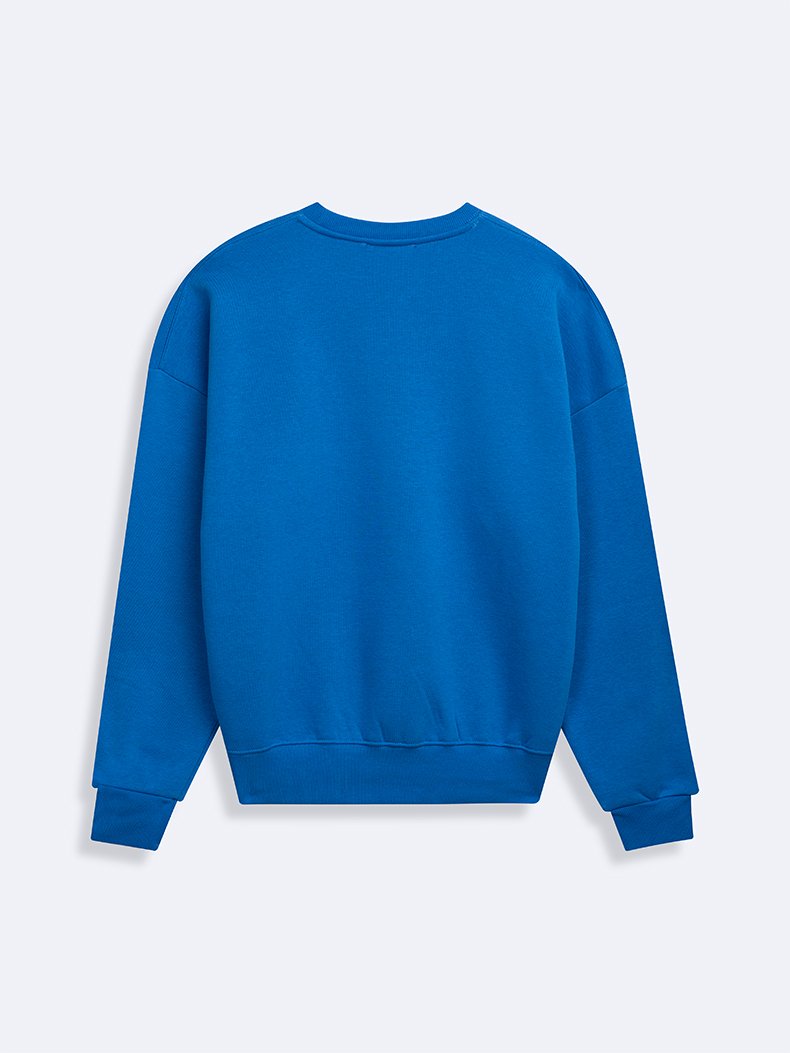 Uzun Kollu Sıfır Yaka Slogan Baskılı Mavi Sweatshırt