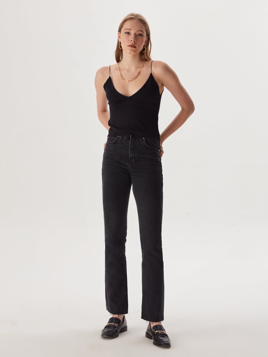 V Yaka Askılı Basic Siyah Atlet