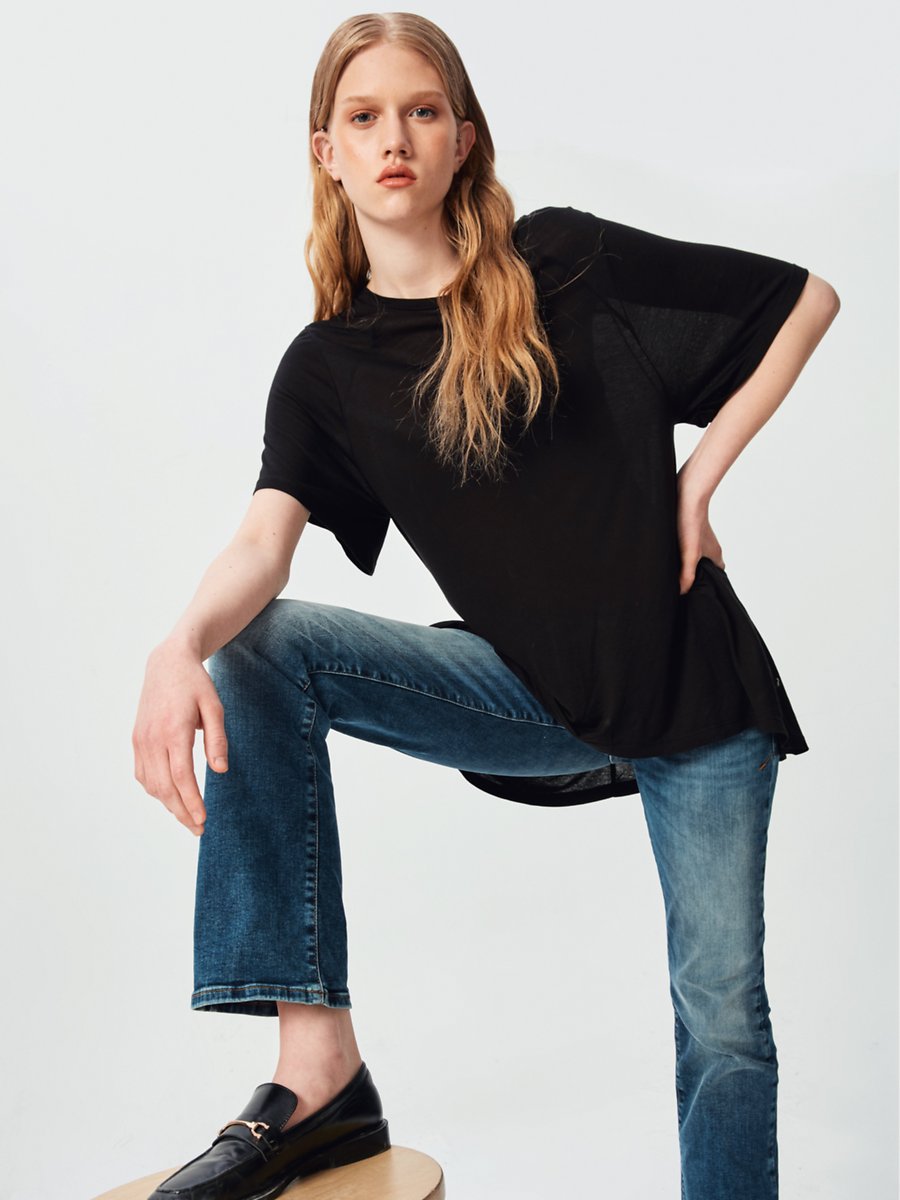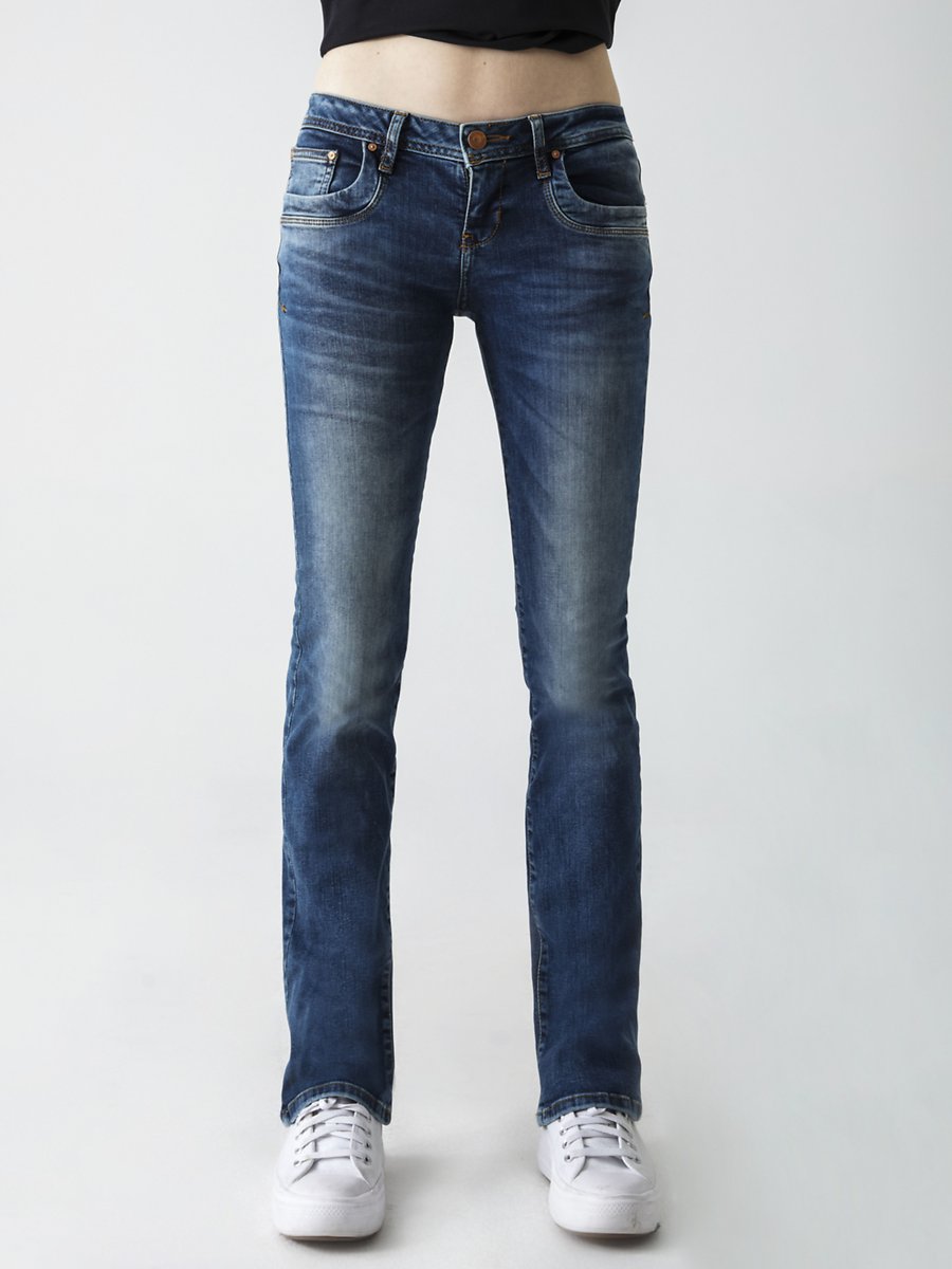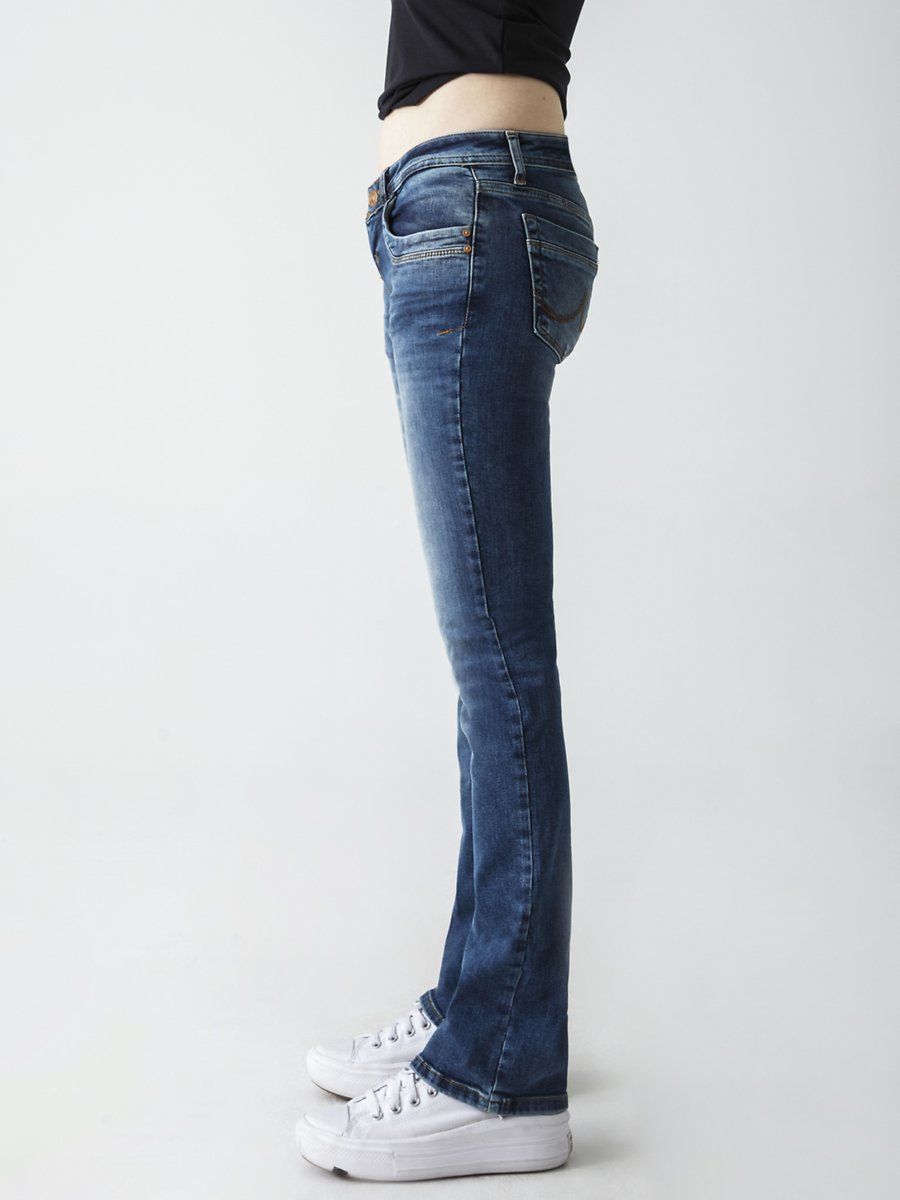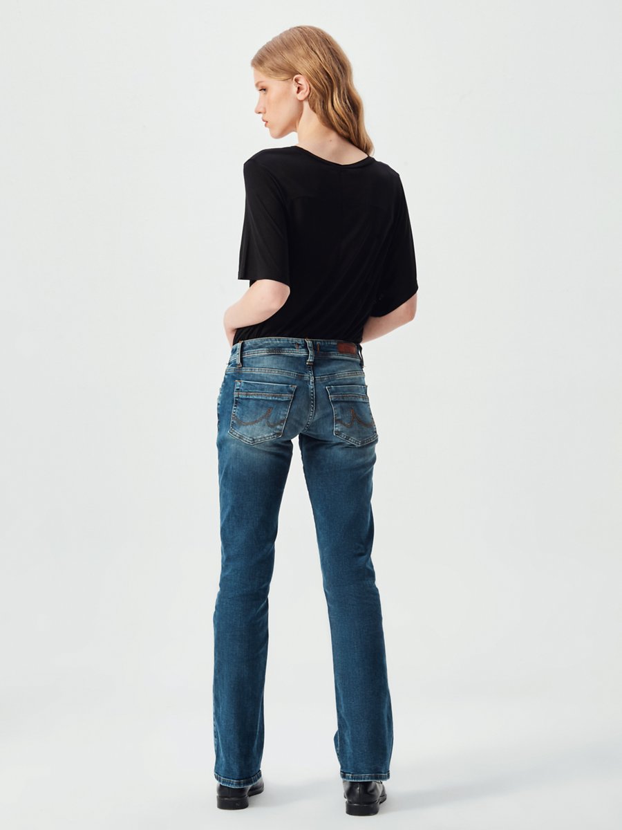 Valerıe Boru Paça Düşük Bel Mid Indigo Jean Pantolon