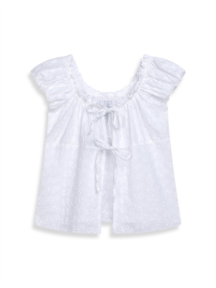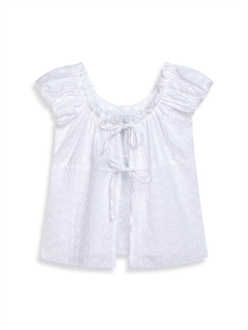 Bağlama Detaylı Brode Beyaz Bluz