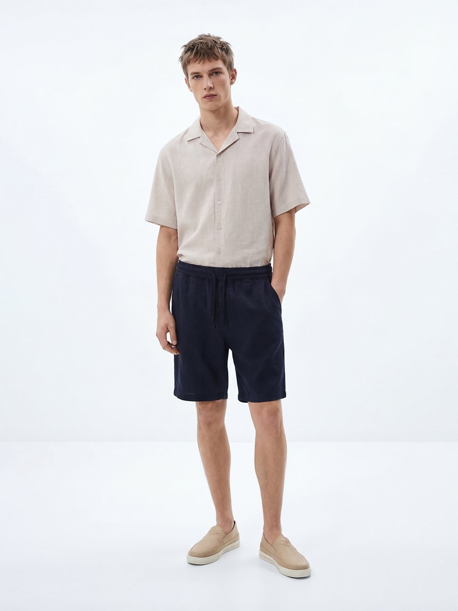 Beli Lastikli Basic Keten Lacivert Şort