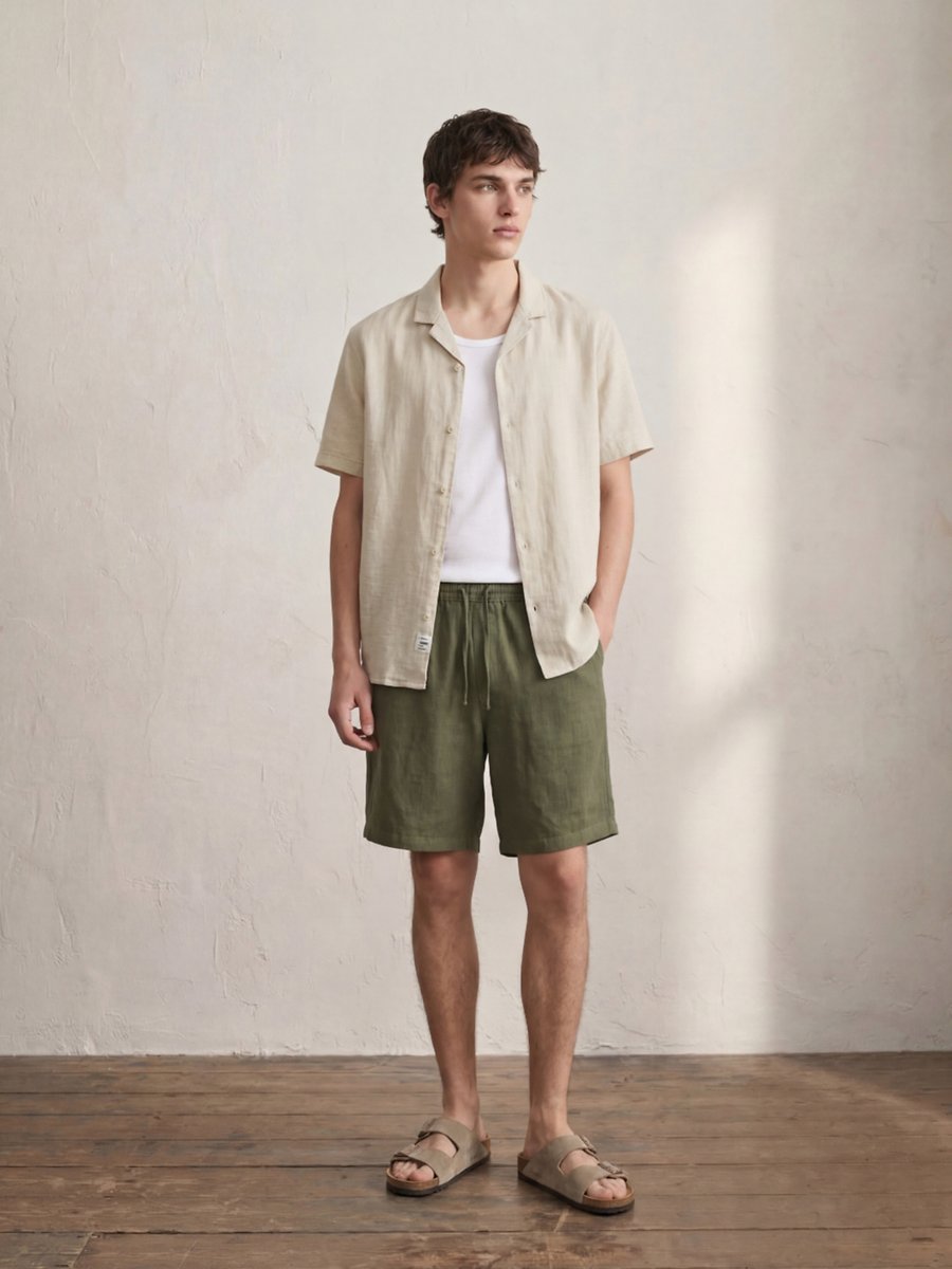 Beli Lastikli Basic Keten Yeşil Şort