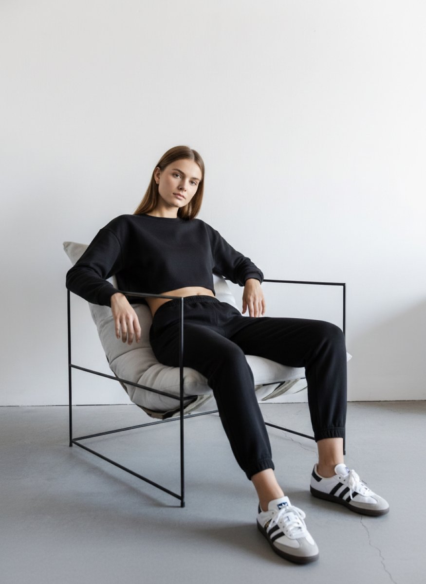 Beli Lastikli Düz Paça Basic Siyah Eşofman