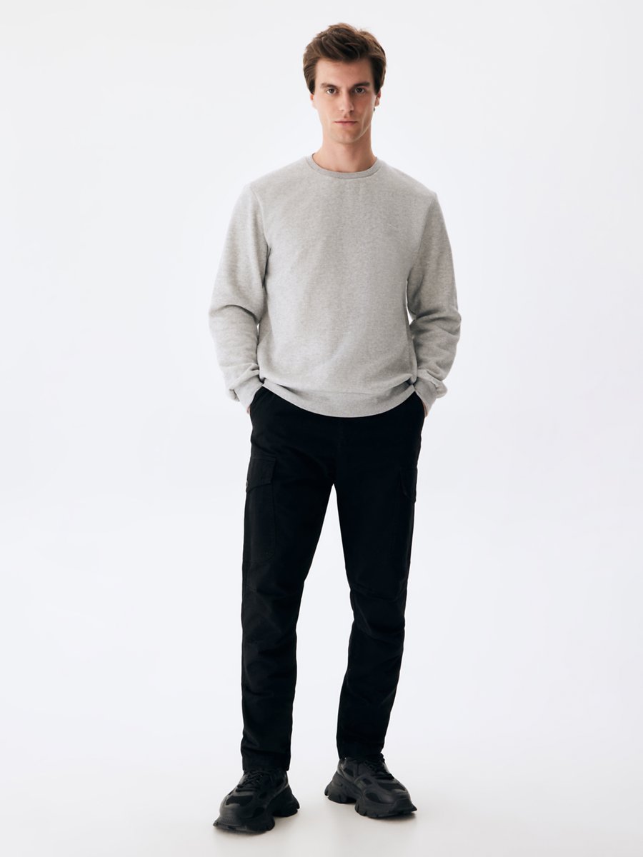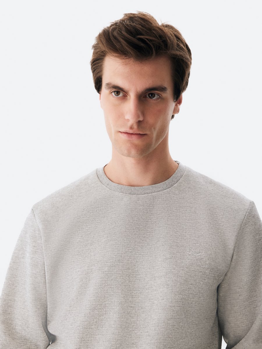 Bisiklet Yaka Uzun Kollu Basic Gri Sweatshırt