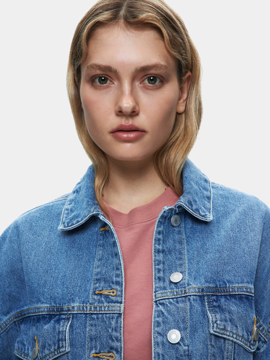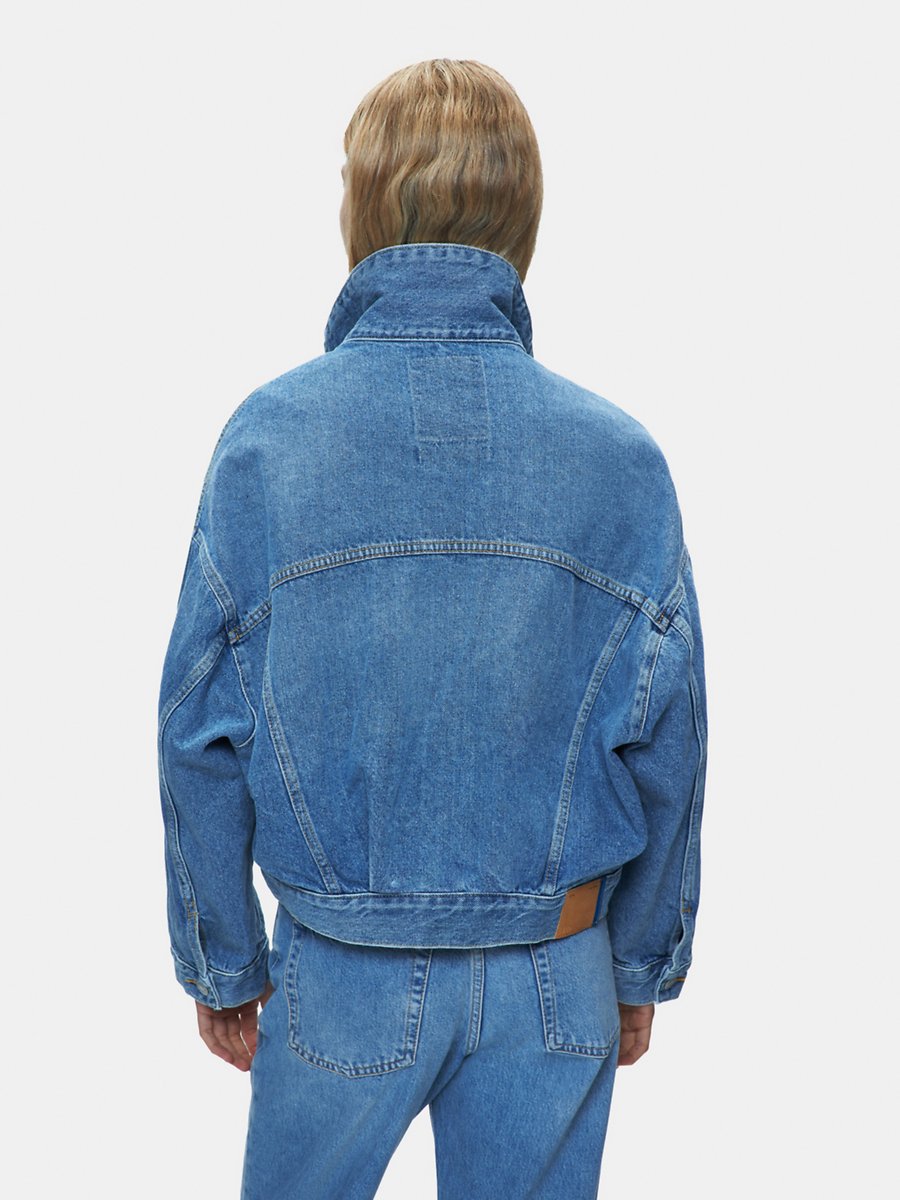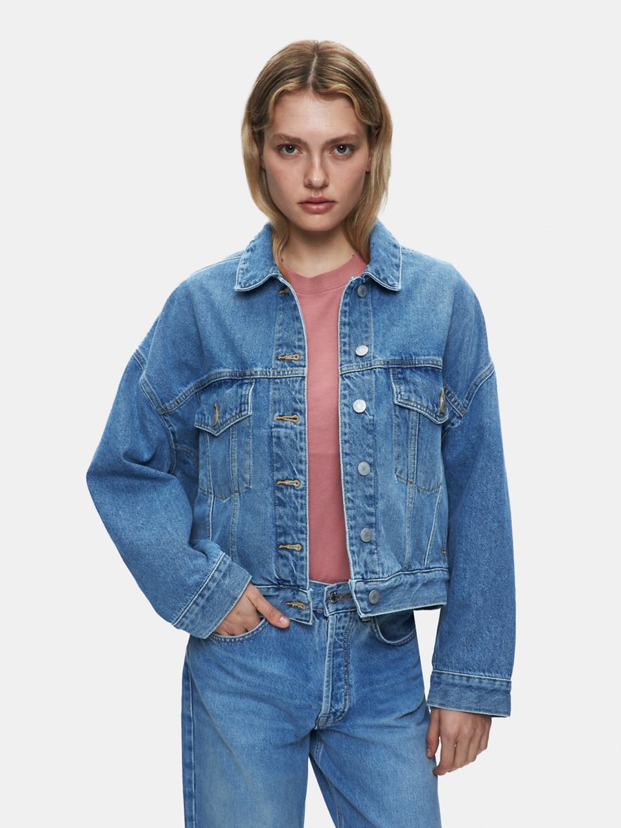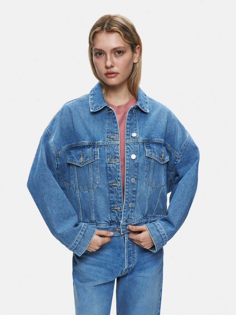 Celıa Oversize Düğmeli Mid Indigo Jean Ceket