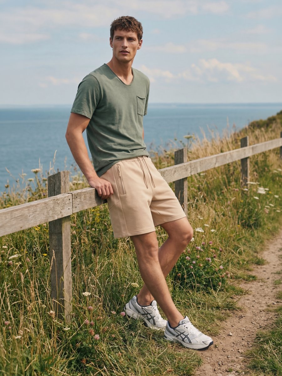 Dikiş Detaylı Fermuarlı Sportif Bej Şort