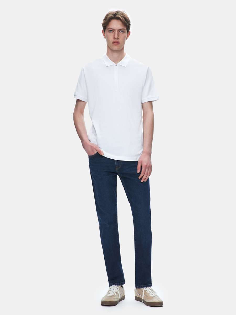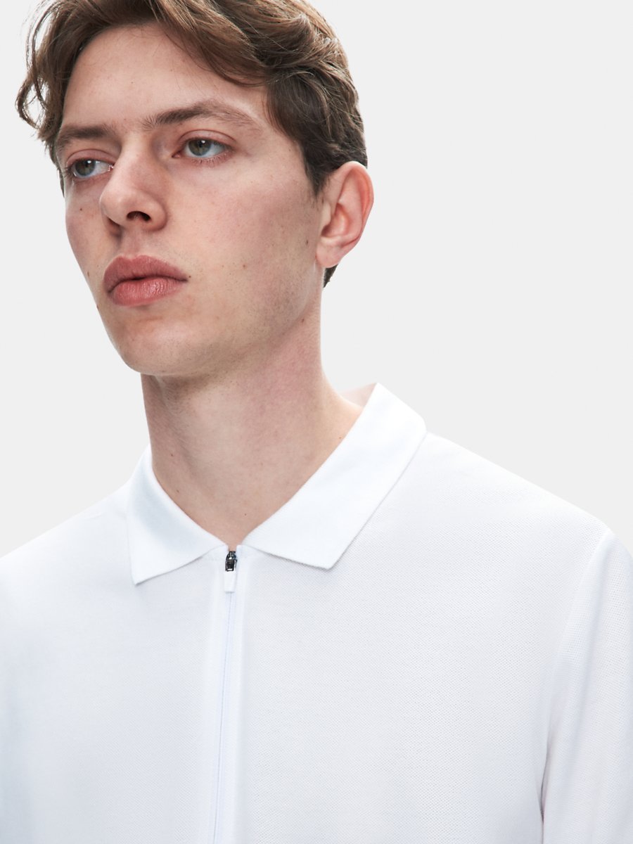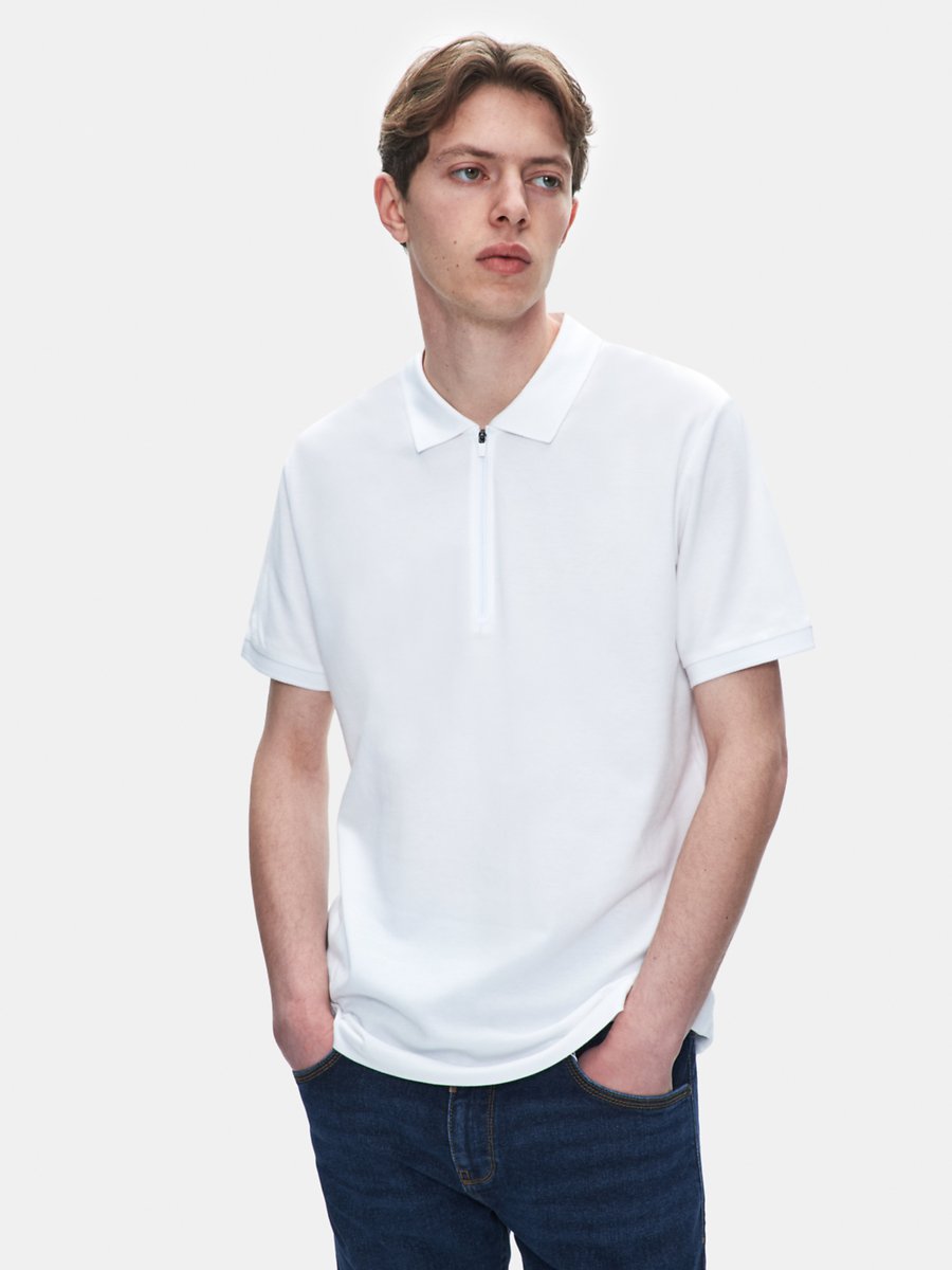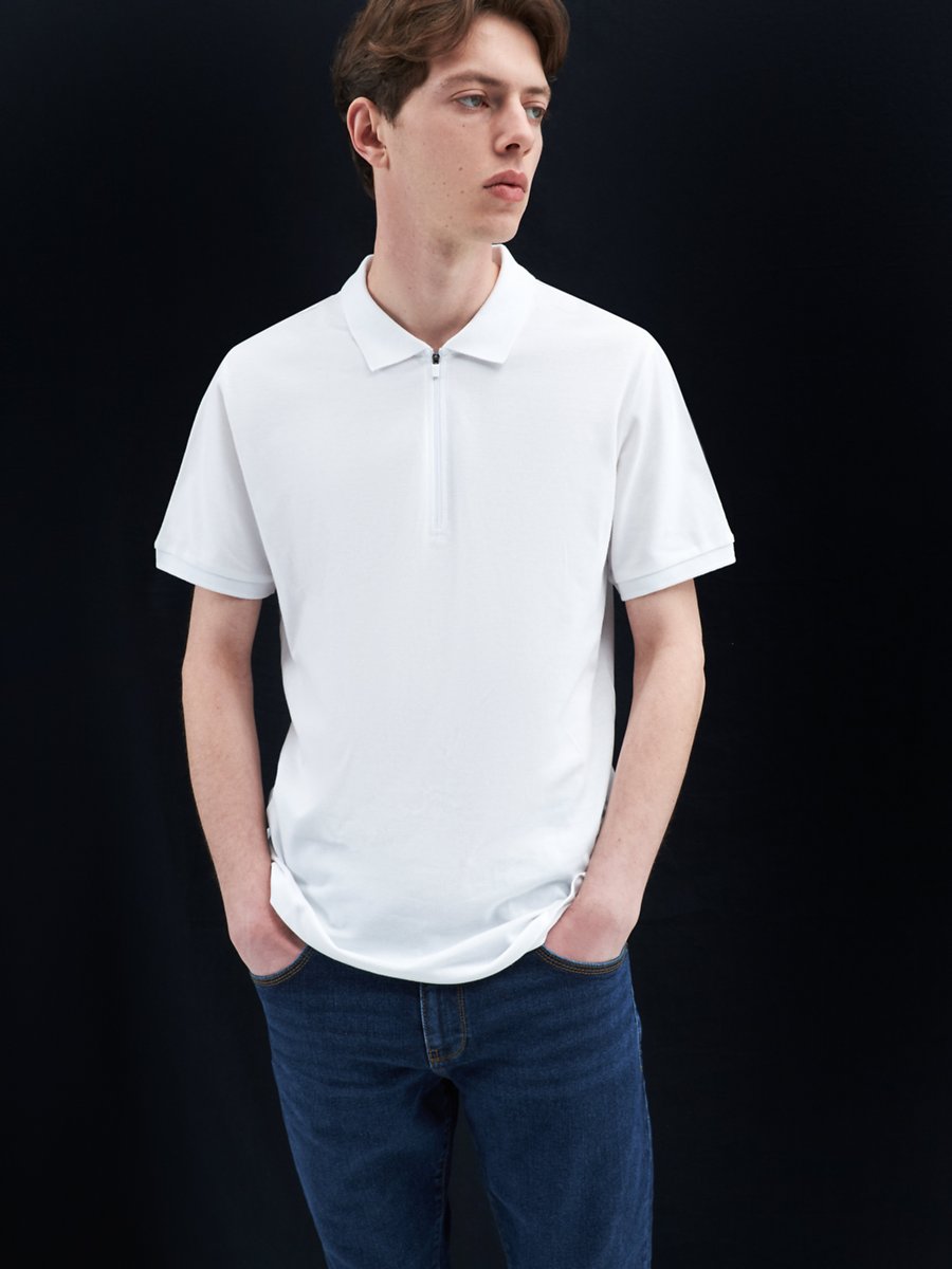 Fermuarlı Pike Polo Yaka Beyaz T-shırt