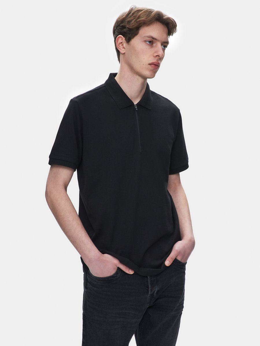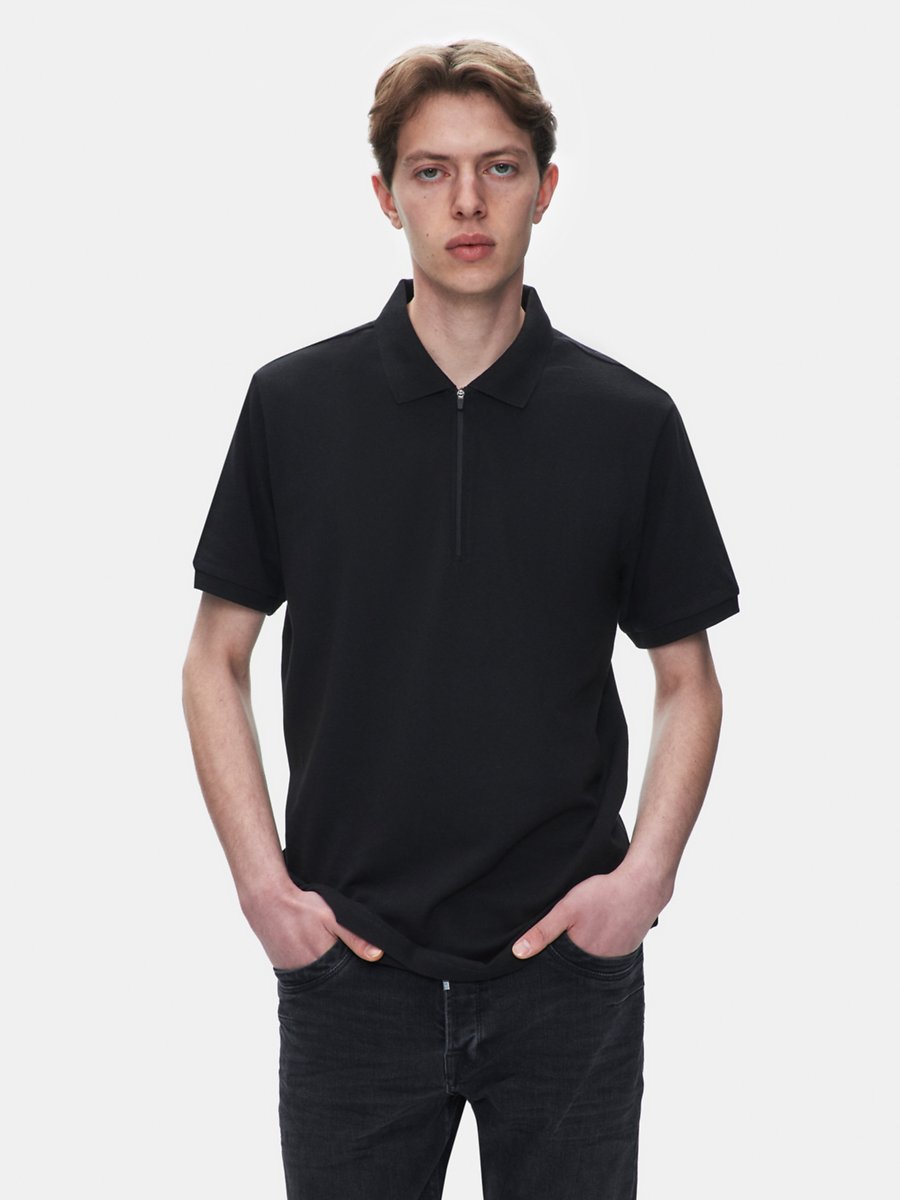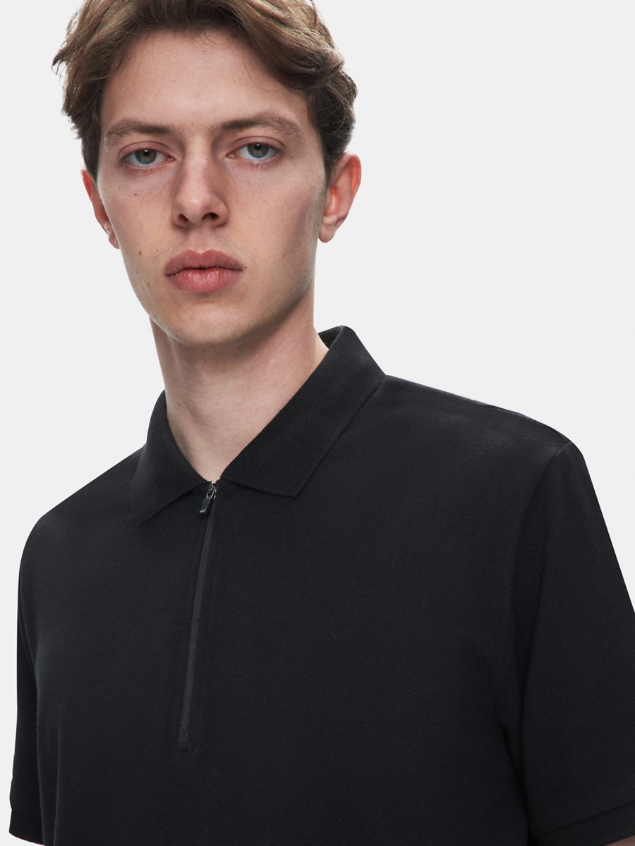 Fermuarlı Pike Polo Yaka Siyah T-shırt