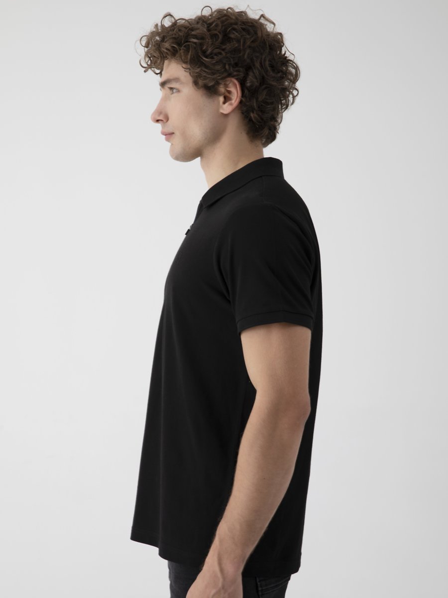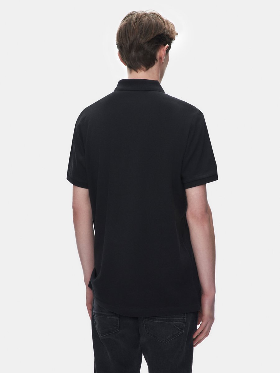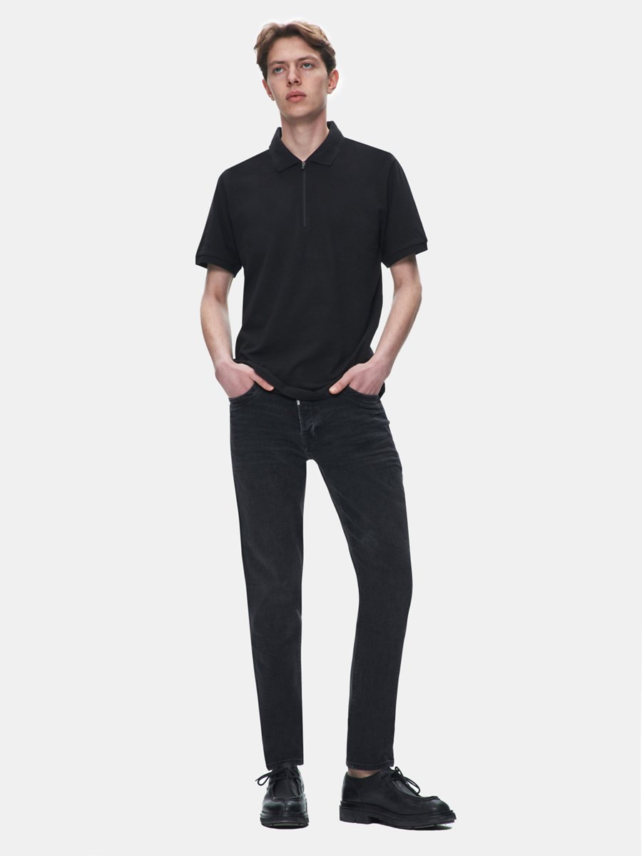 Fermuarlı Pike Polo Yaka Siyah T-shırt