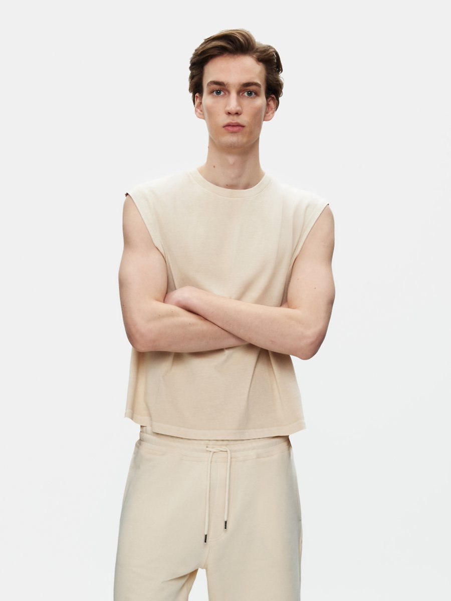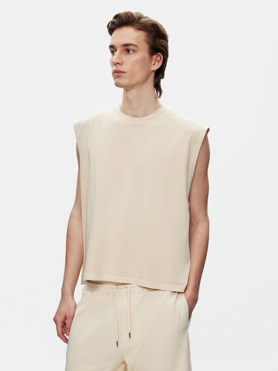 Sırt Baskılı Kolsuz T-shirt Bej Atlet