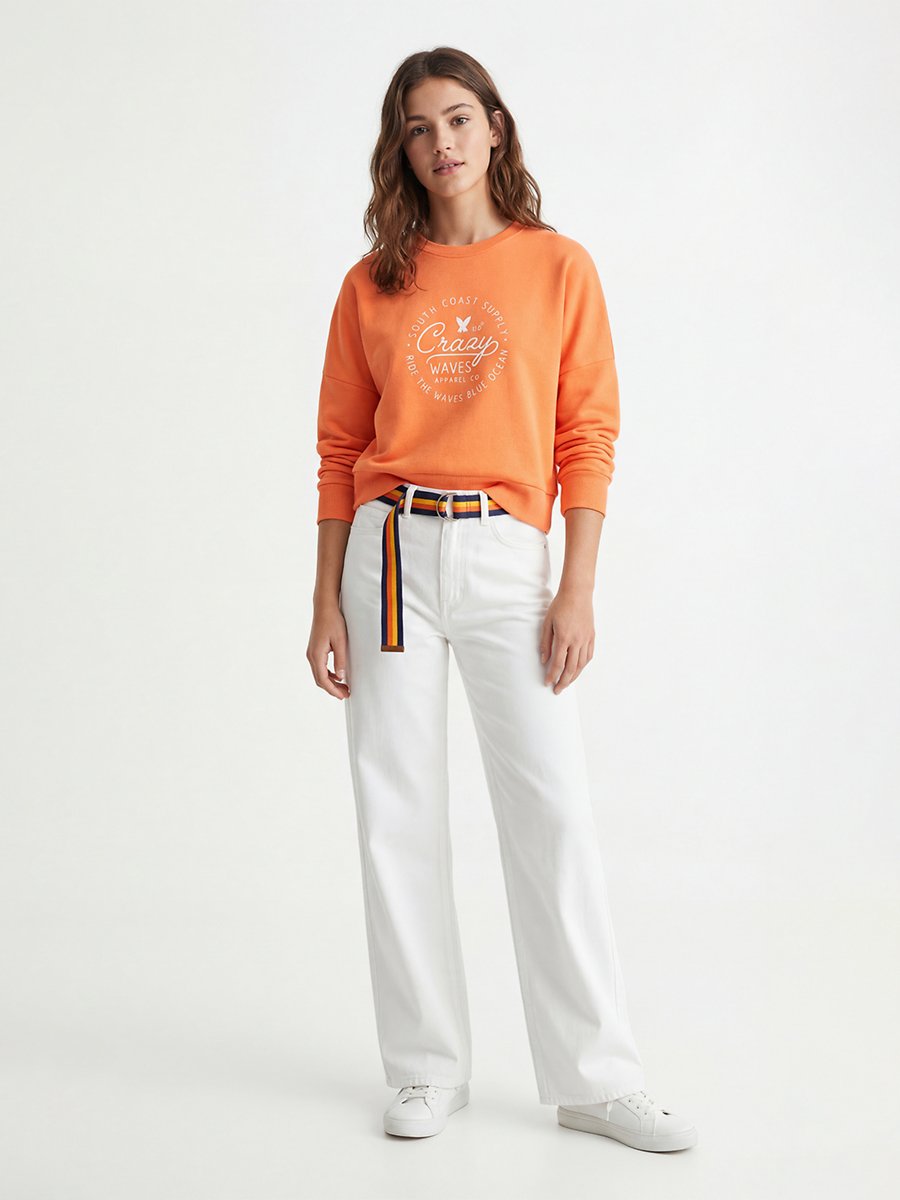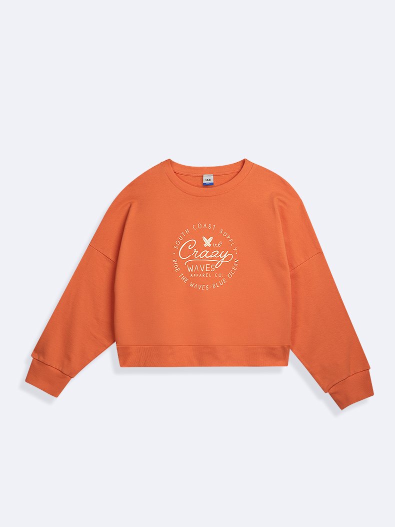Baskılı Diagonal Relaxed Turuncu Sweatshırt