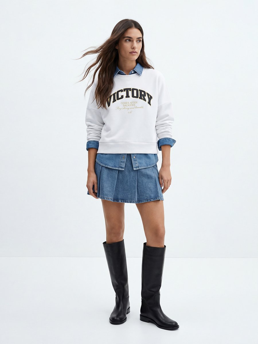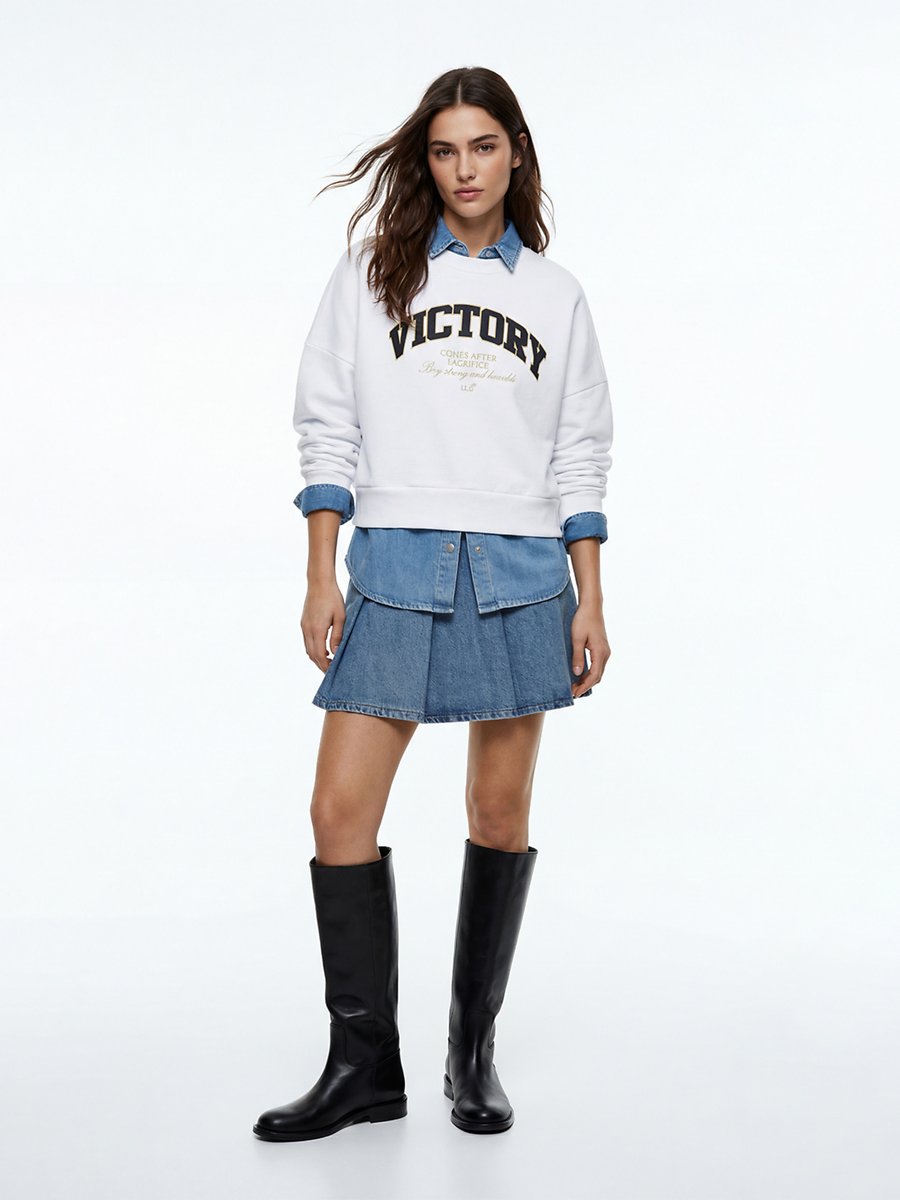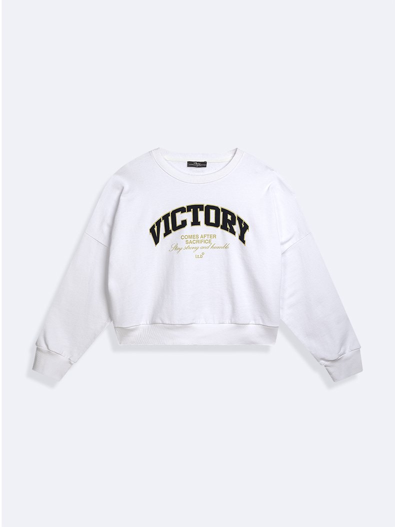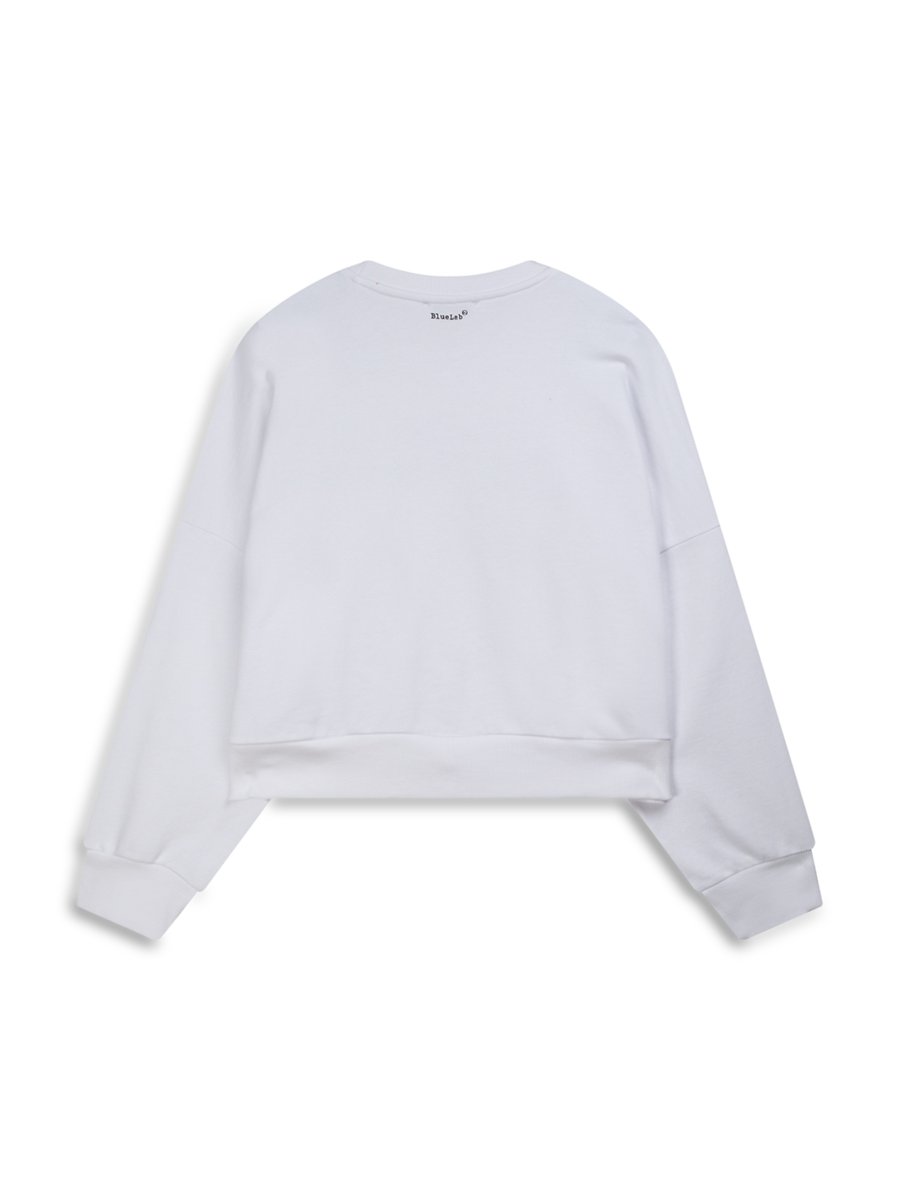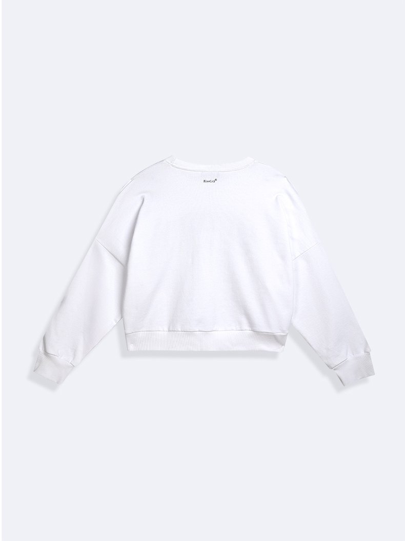 Slogan Baskılı Diagonal Relaxed Beyaz Sweatshırt