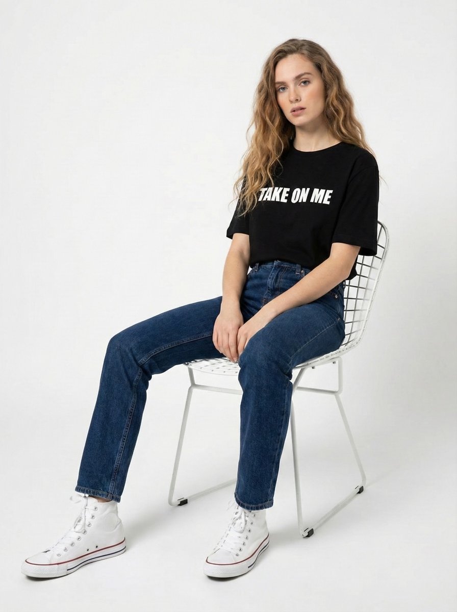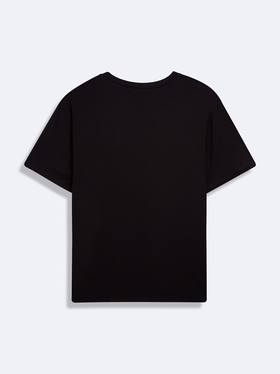 Kısa Kollu Sıfır Yaka Slogan Baskılı Siyah T-shırt