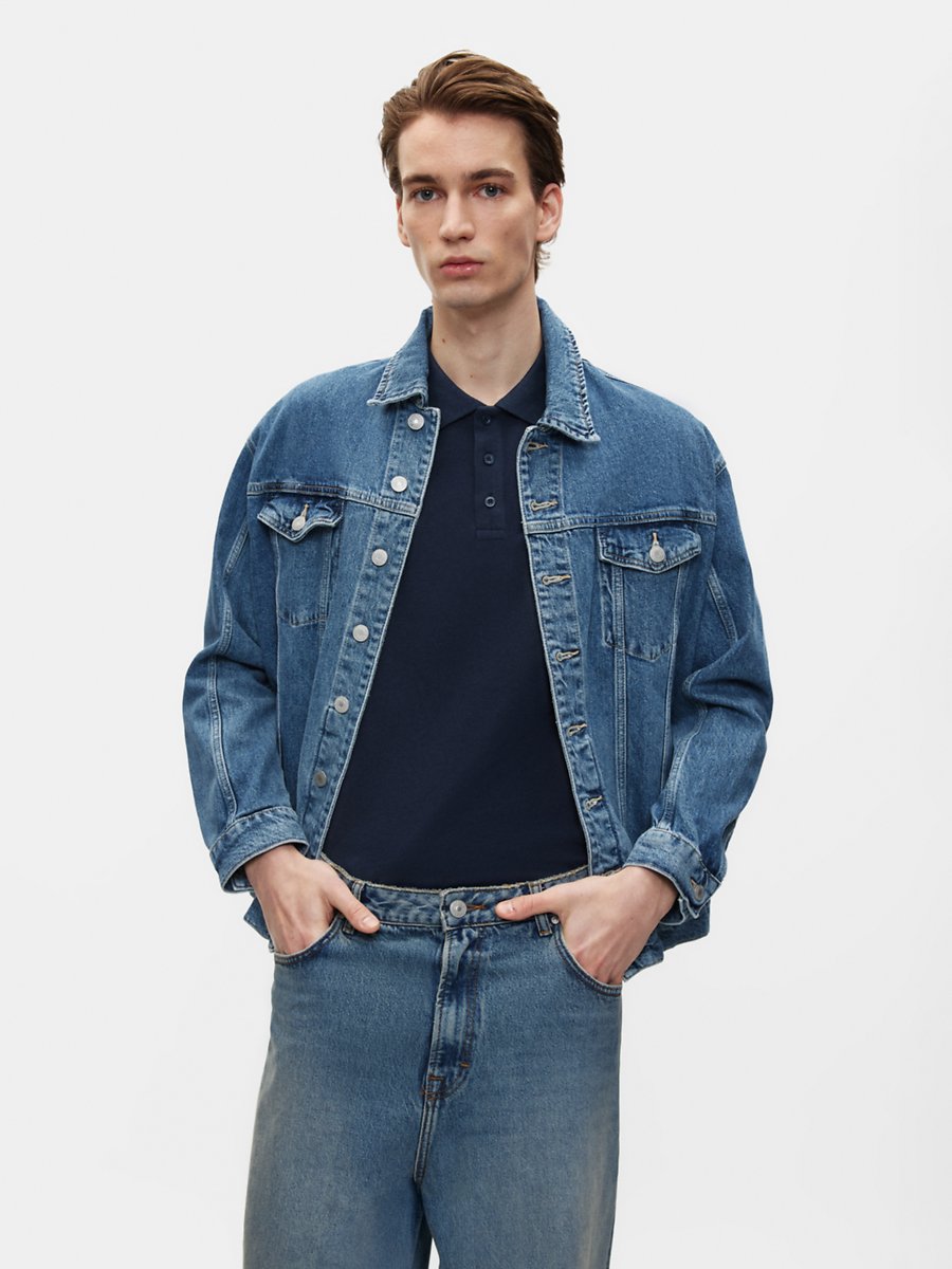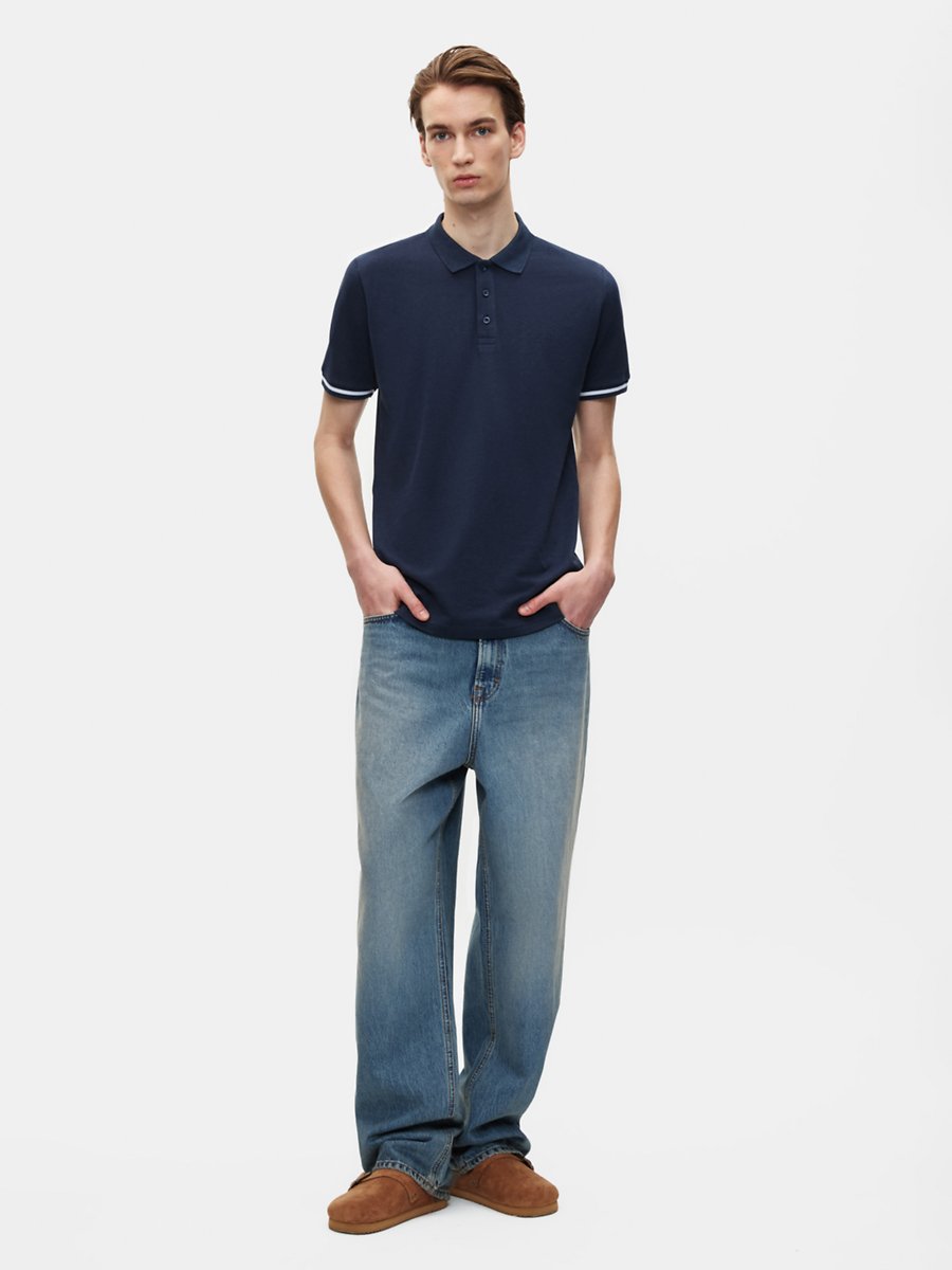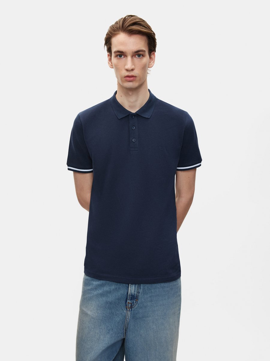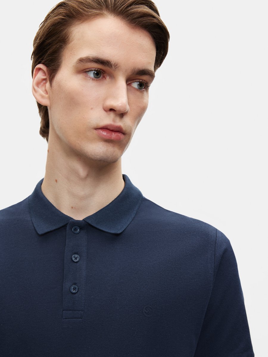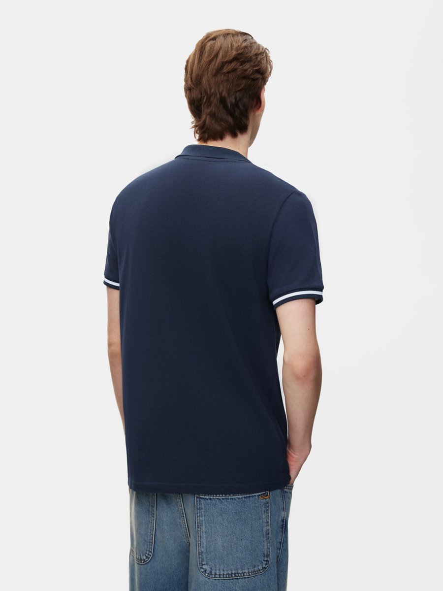 Kontrast Kol Detaylı Düğmeli Lacivert T-shırt