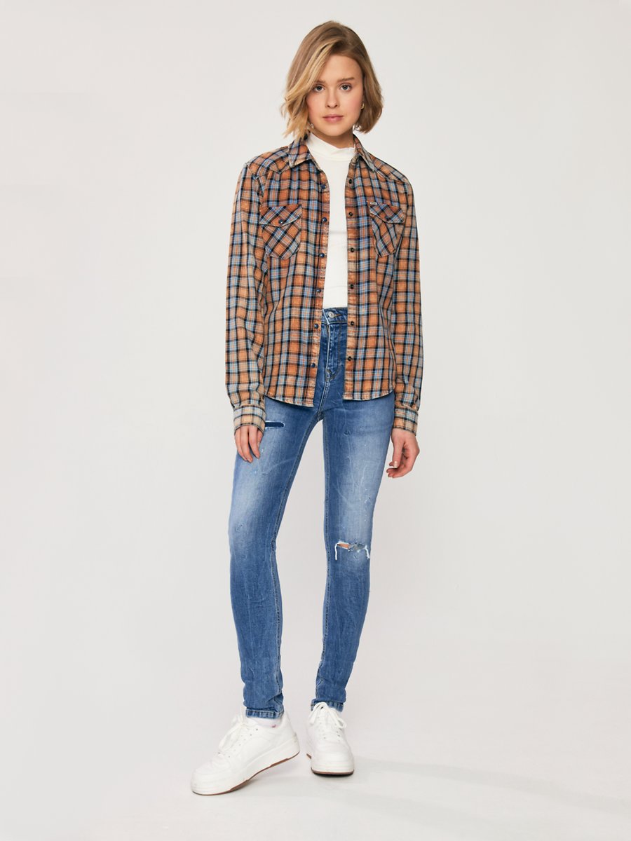 Lucında Dar Kesim Gömlek Yaka Karışık Jean Gömlek