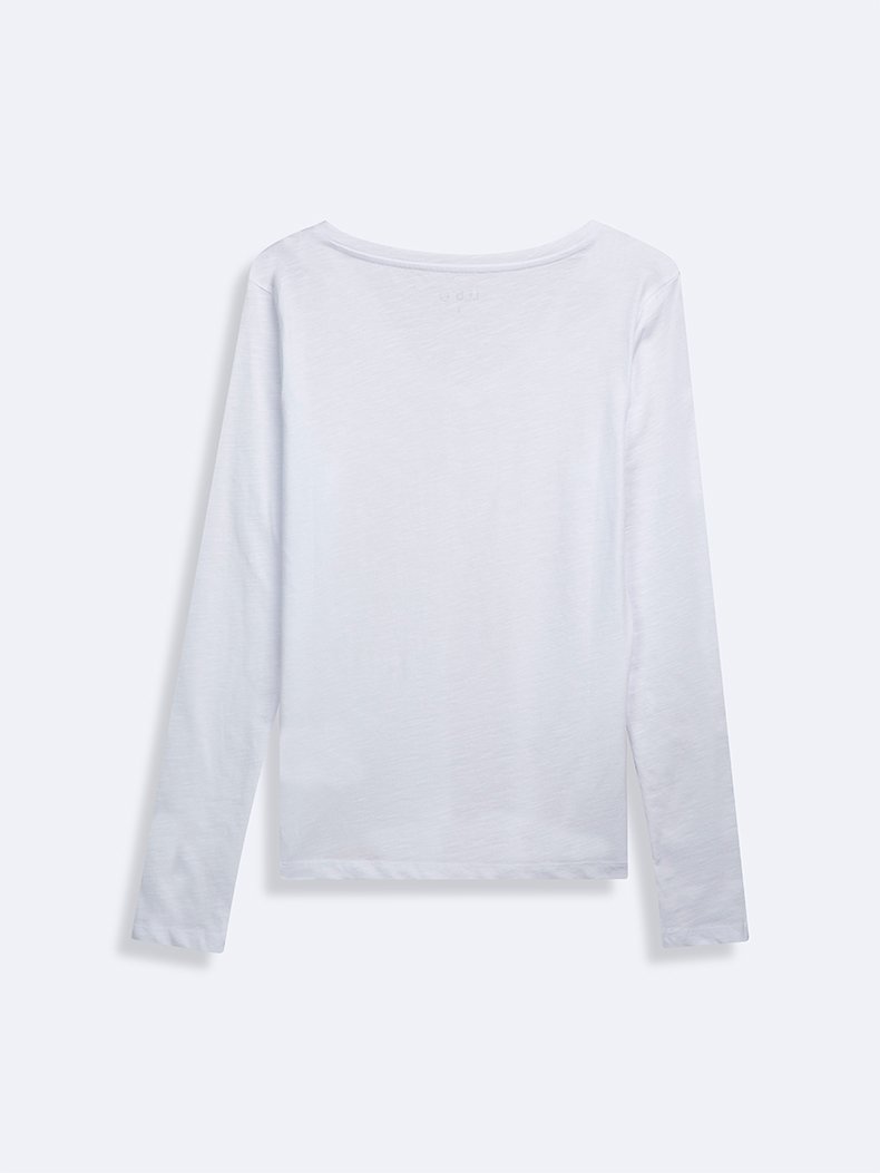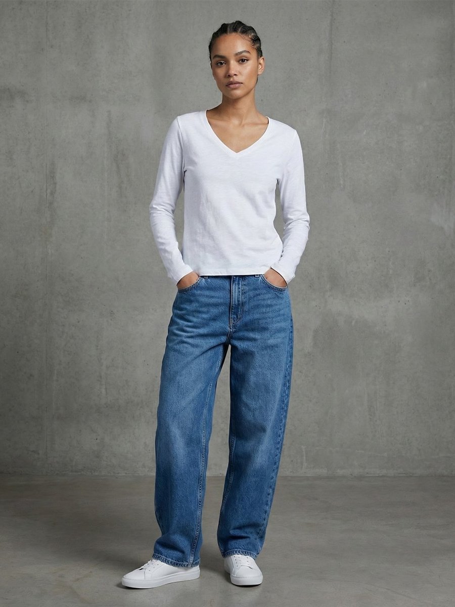 Uzun Kollu V Yaka Basic Beyaz Sweatshırt