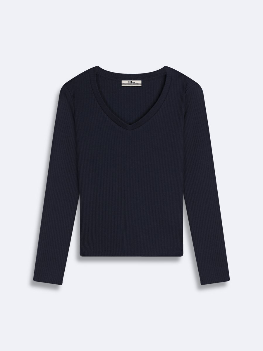 Manches Longues Col En V Bleu Fonce Sweatshırt