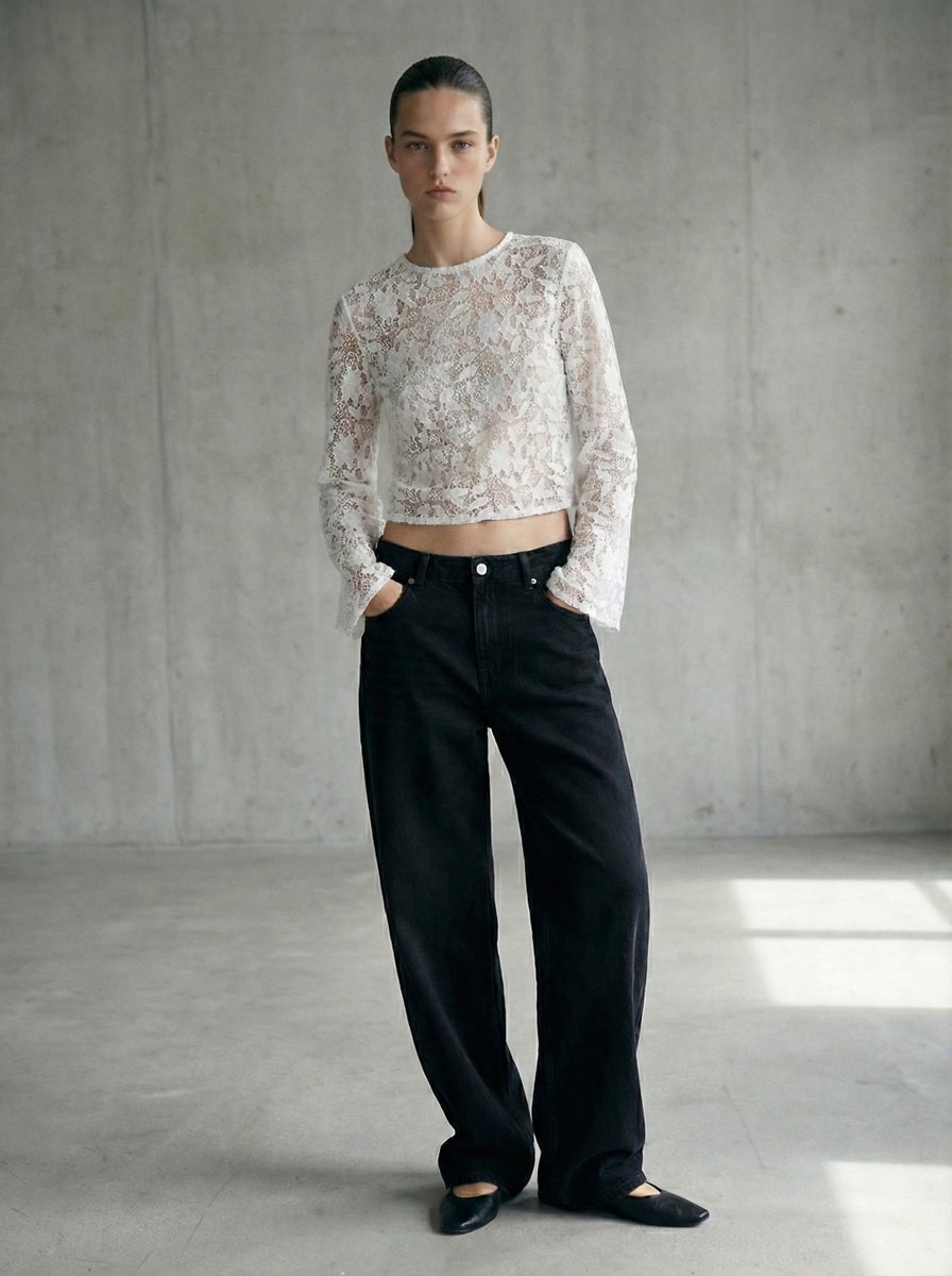Uzun Kollu Dantel Detaylı Zarif Beyaz Bluz