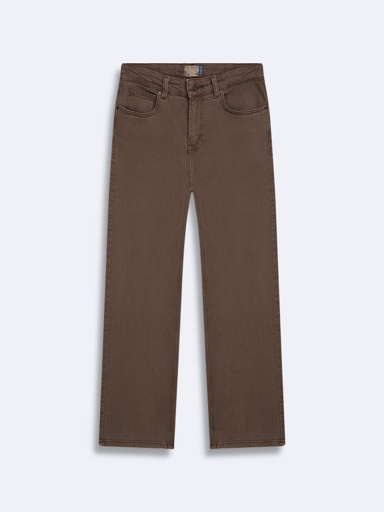 New Wanda Düz Paça Rahat Kesim Kahverengi Jean Pantolon