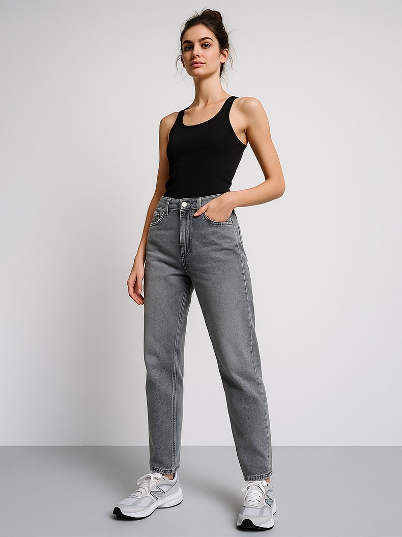 Rebecca Yüksek Bel Dar Paça Gri Jean Pantolon