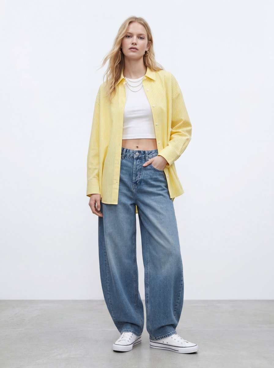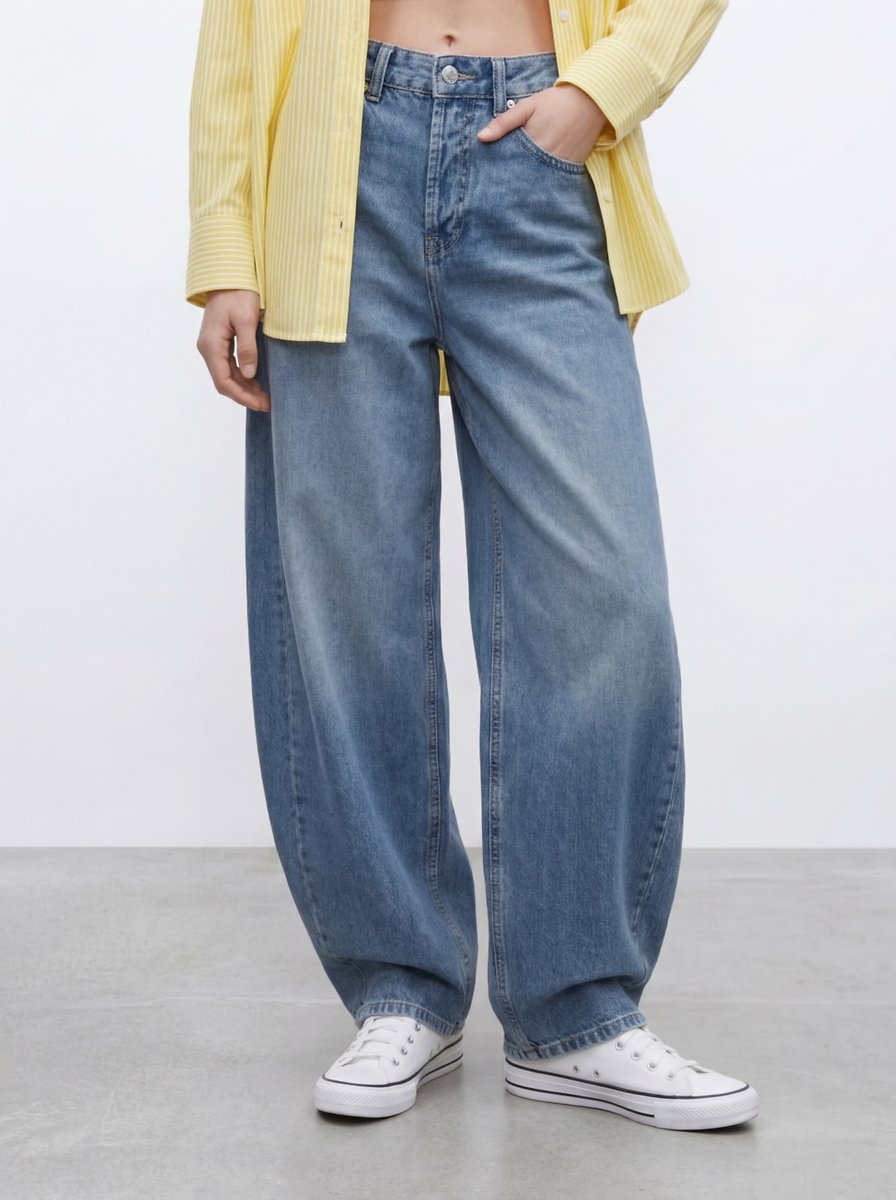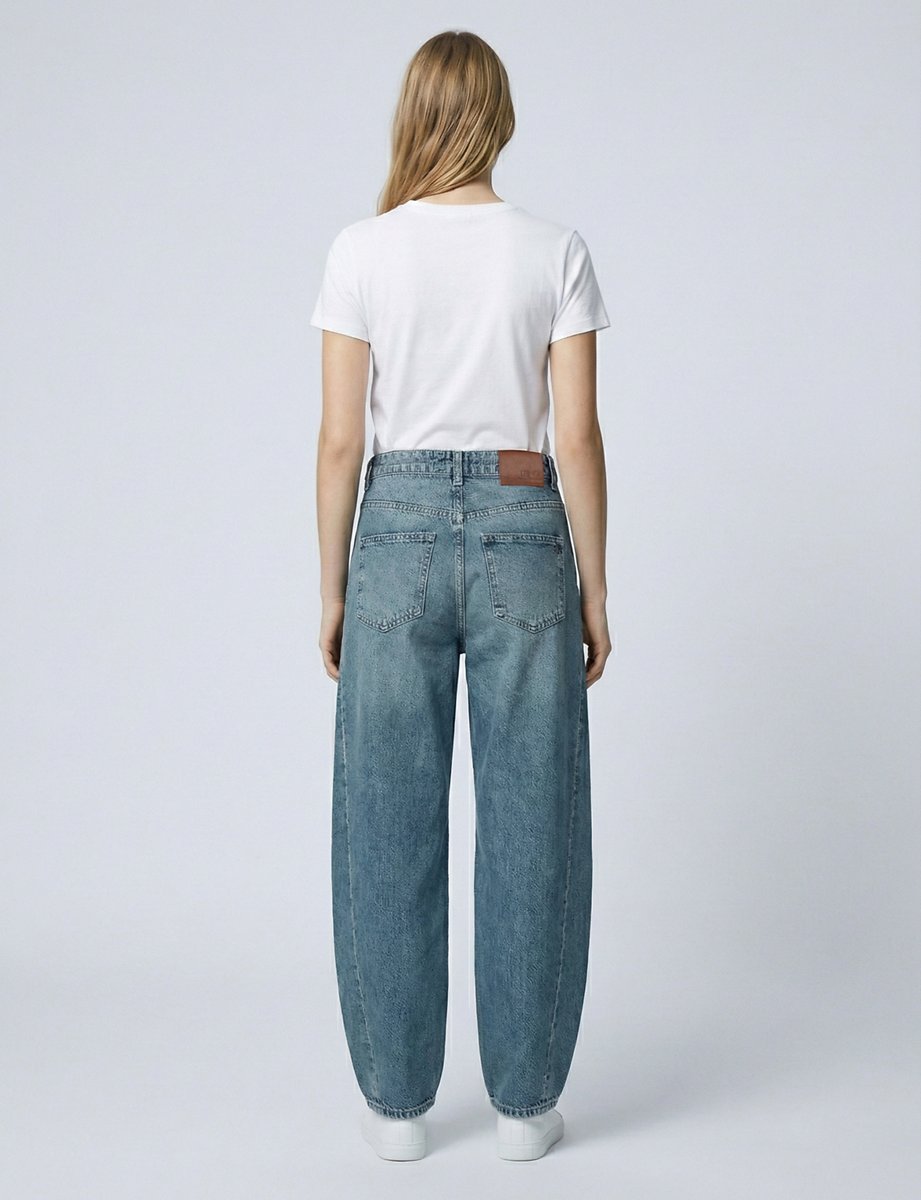 Romına Yüksek Bel Geniş Paça Mid Indigo Jean Pantolon