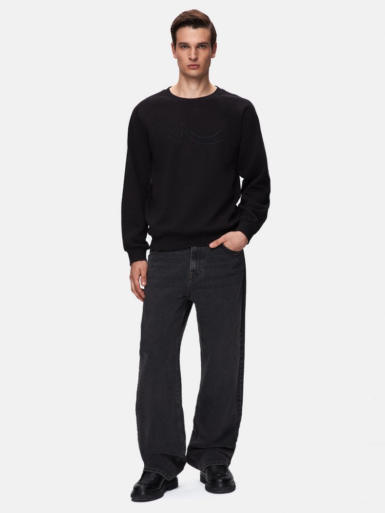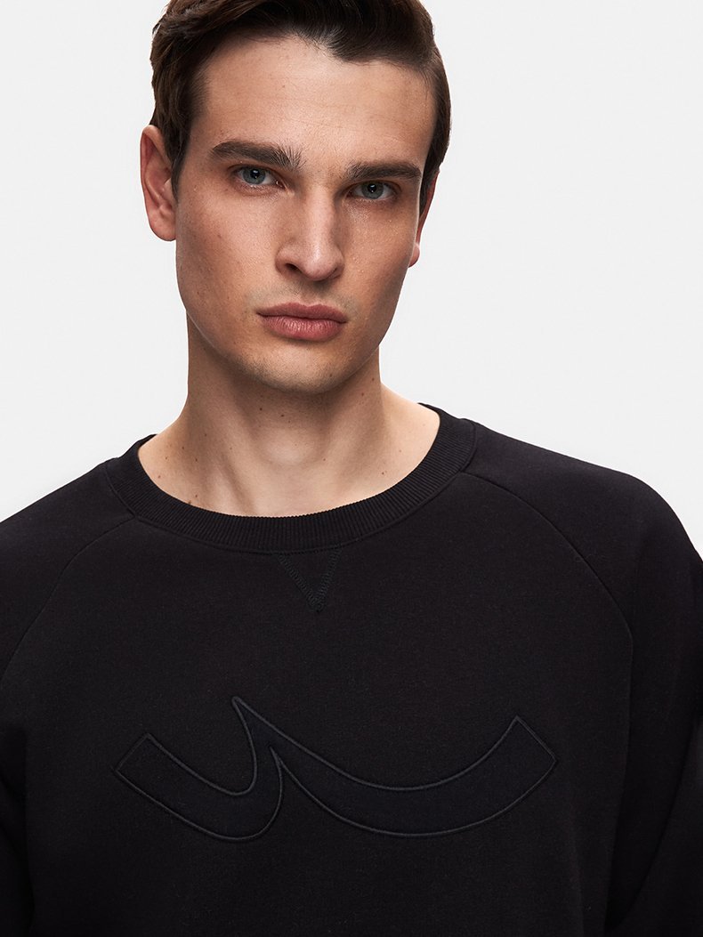 Sign Baskılı Sıfır Yaka Uzun Kollu Siyah Sweatshırt