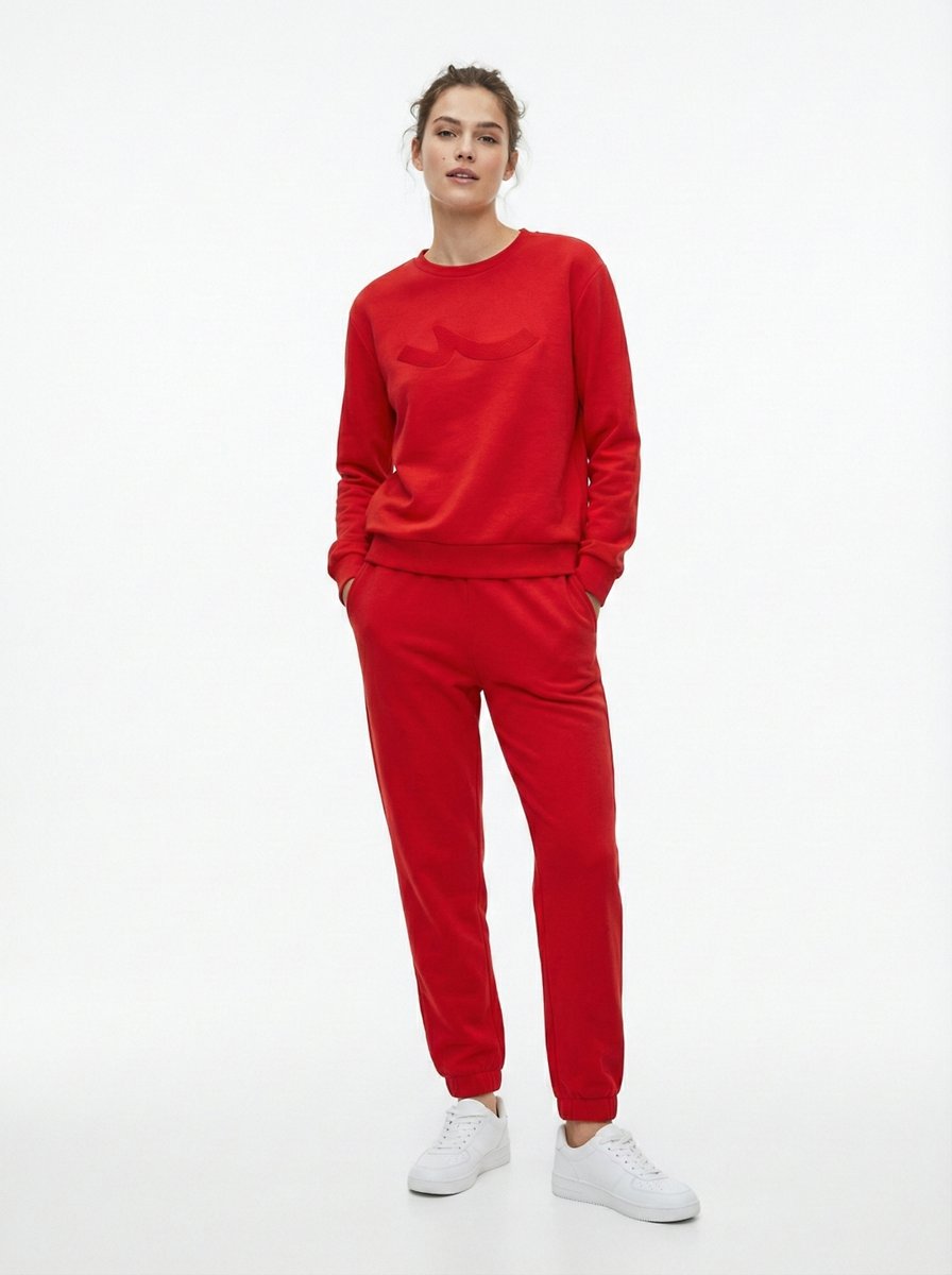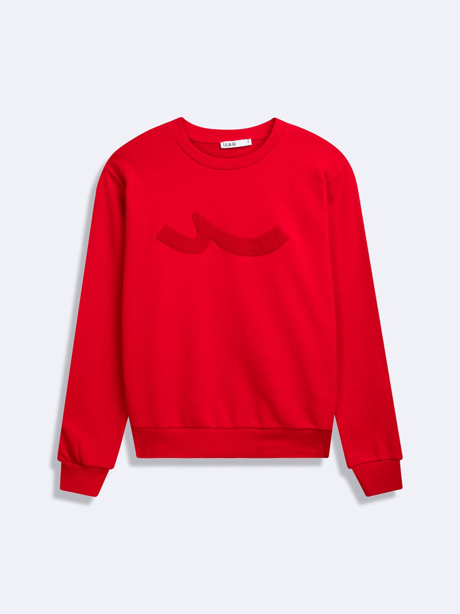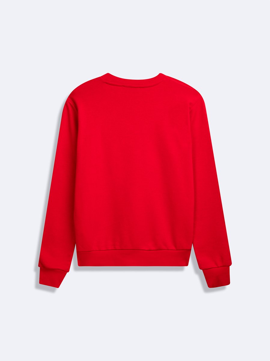 Sign Baskılı Uzun Kollu Bisiklet Yaka Kırmızı Sweatshırt