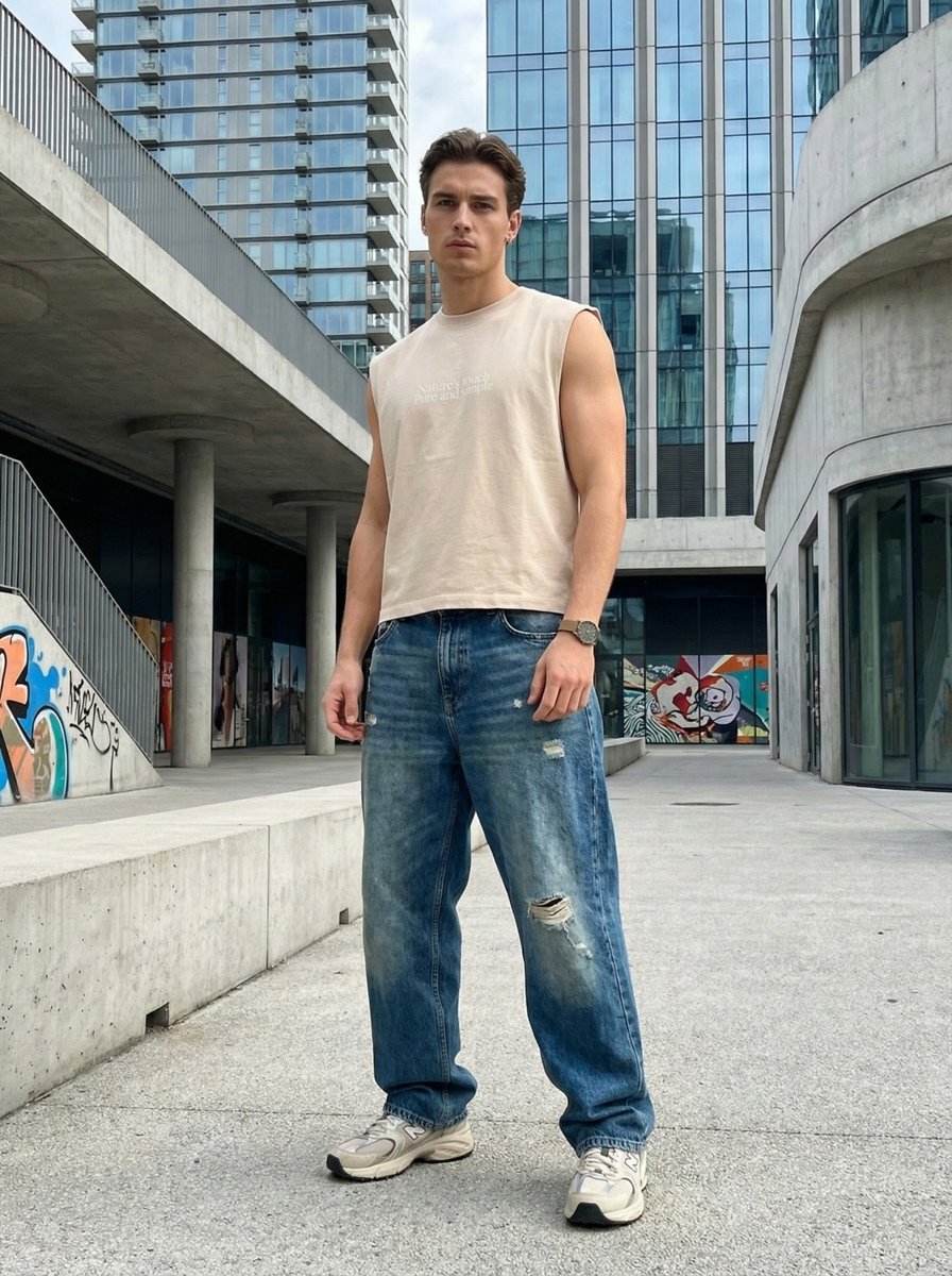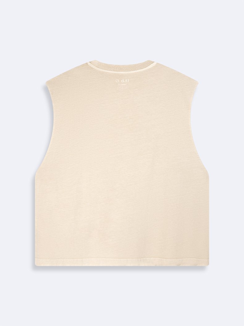 Minimal Yazı Baskılı Sıfır Kol Bej Atlet