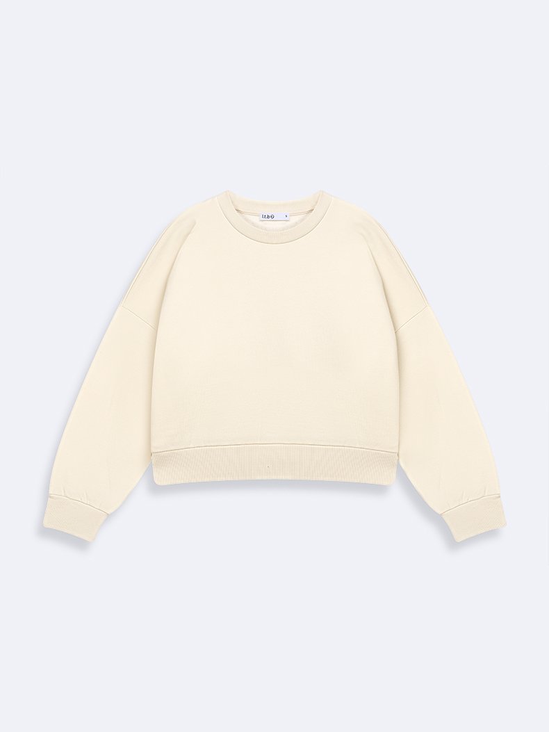 Uzun Kollu Bisiklet Yaka Basic Bej Sweatshırt