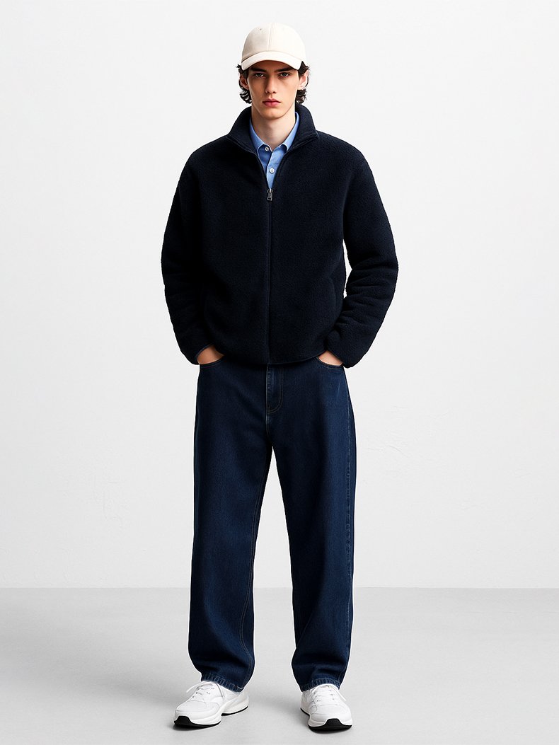 Uzun Kollu Dik Yaka Fermuarlı Polar Lacivert Sweatshırt