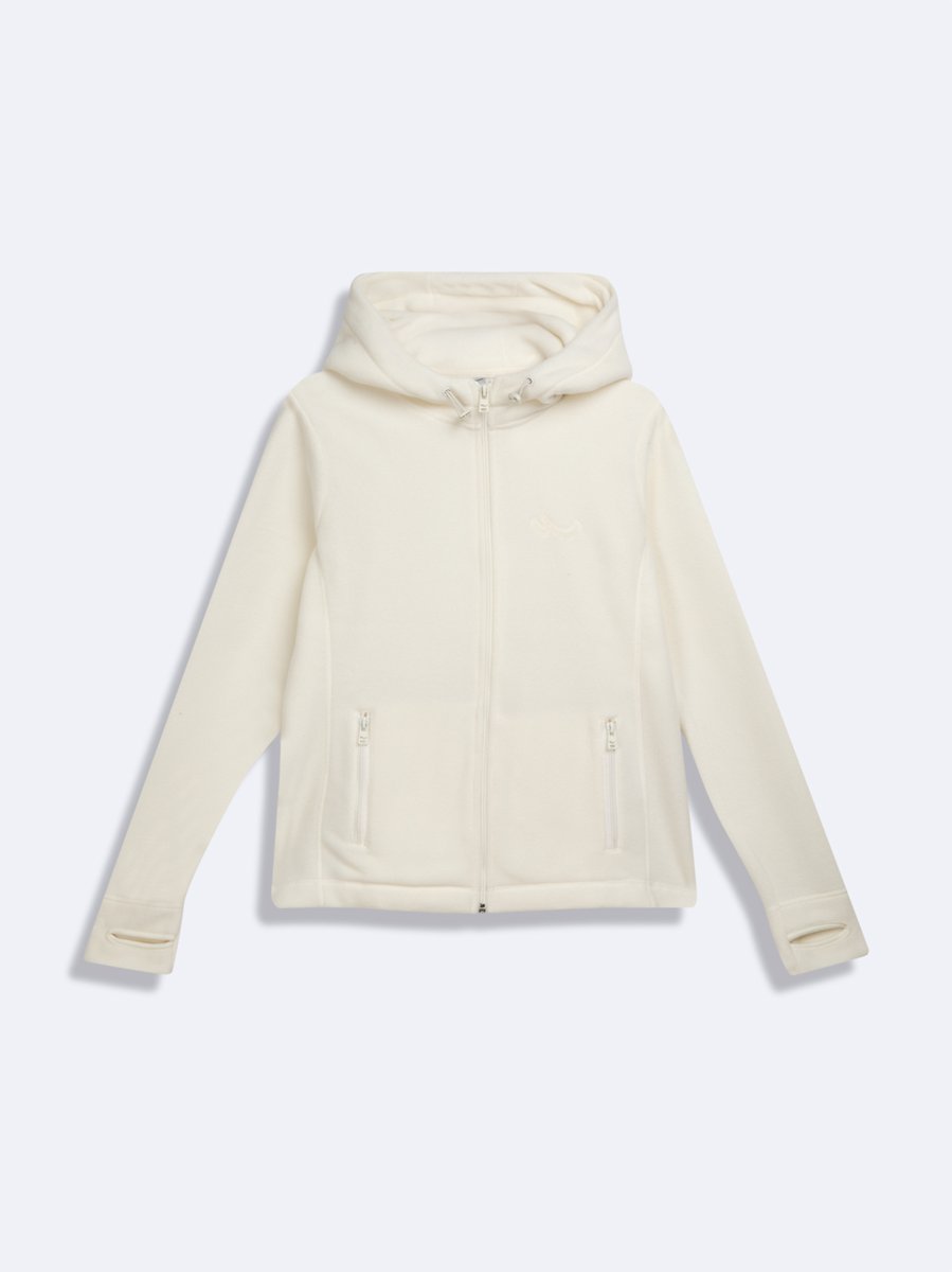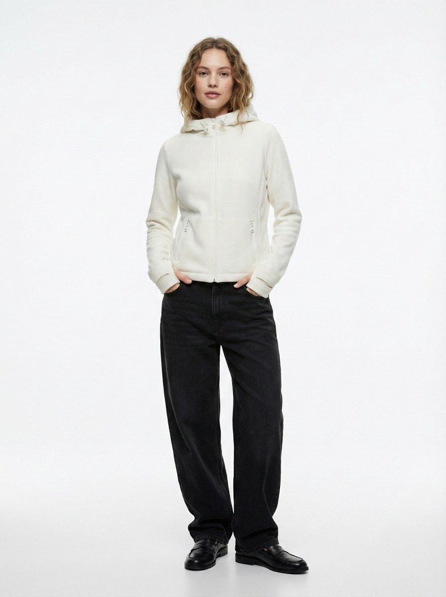 Uzun Kollu Kapüşonlu Polar Beyaz Sweatshırt