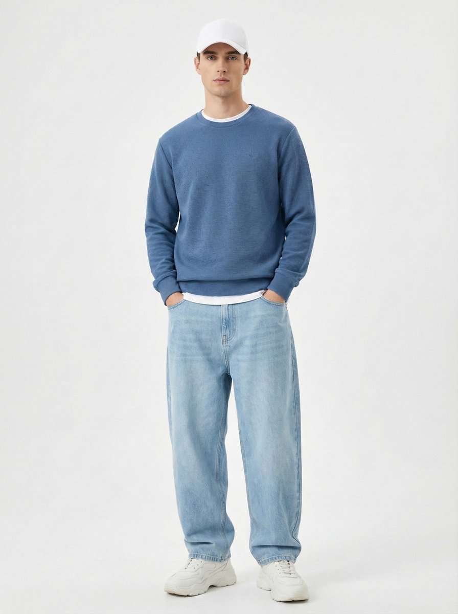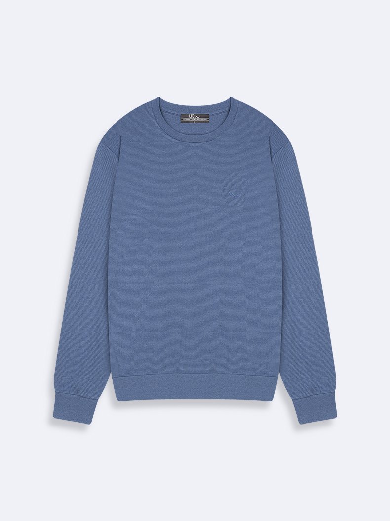 Uzun Kollu Sıfır Yaka Basic Mavi Sweatshırt