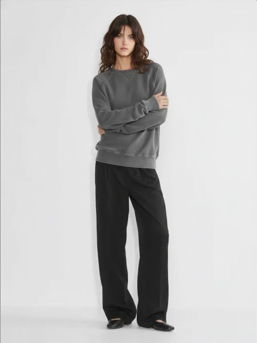 Uzun Kollu Sıfır Yaka Faded Fabric Antrasit Sweatshırt