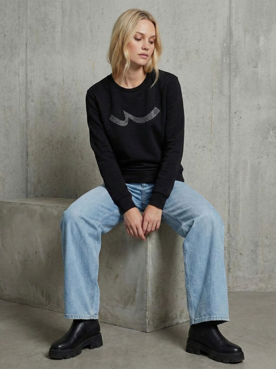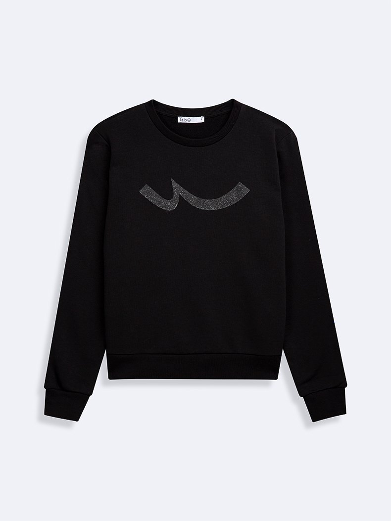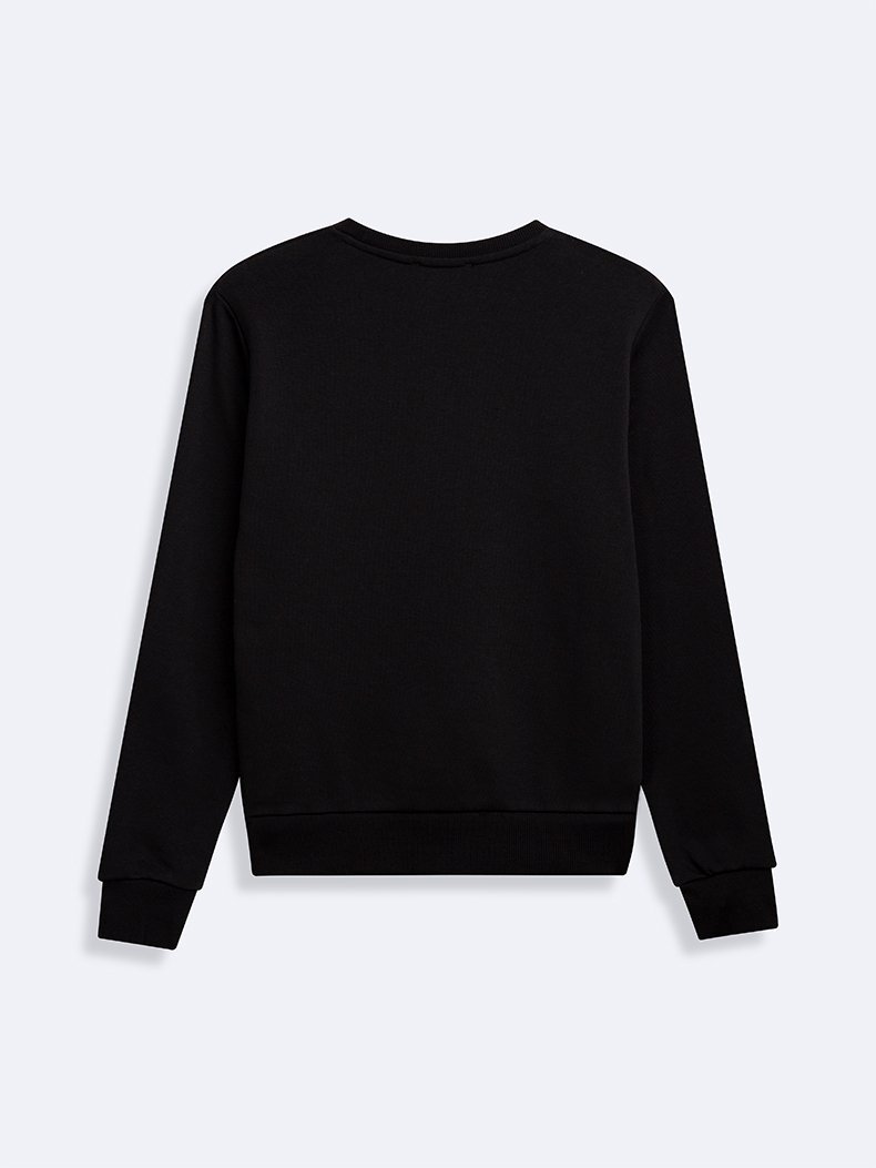 Uzun Kollu Sıfır Yaka Sign Baskılı Siyah Sweatshırt