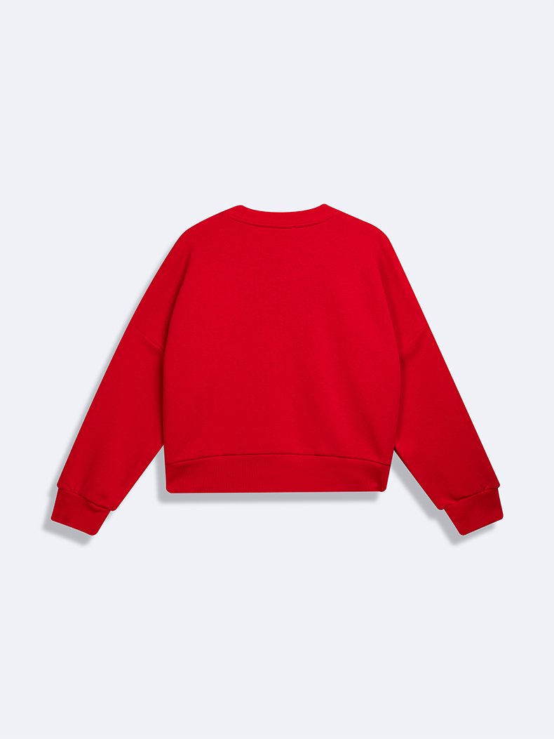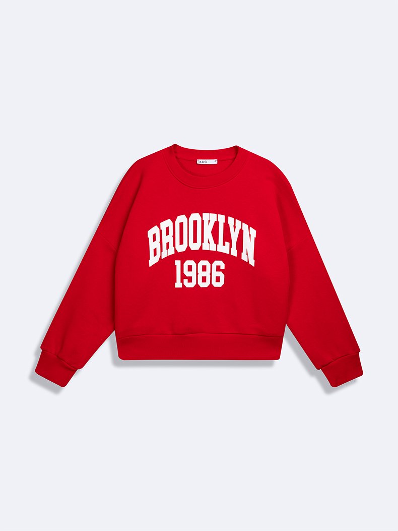Uzun Kollu Sıfır Yaka Slogan Baskılı Kırmızı Sweatshırt