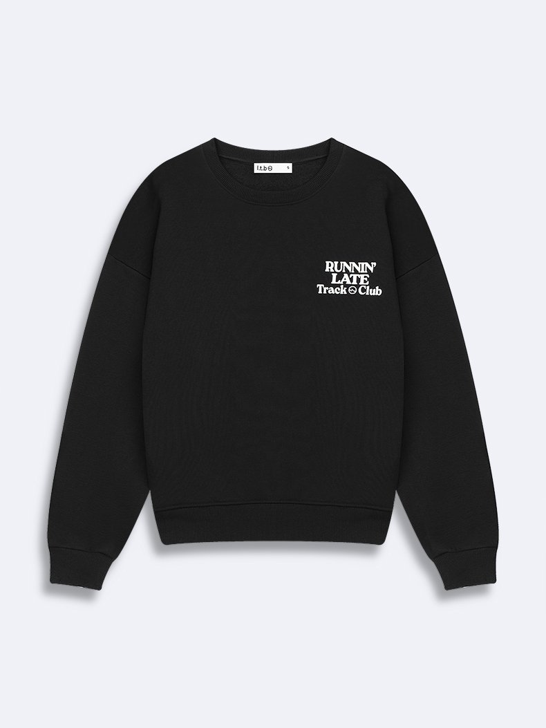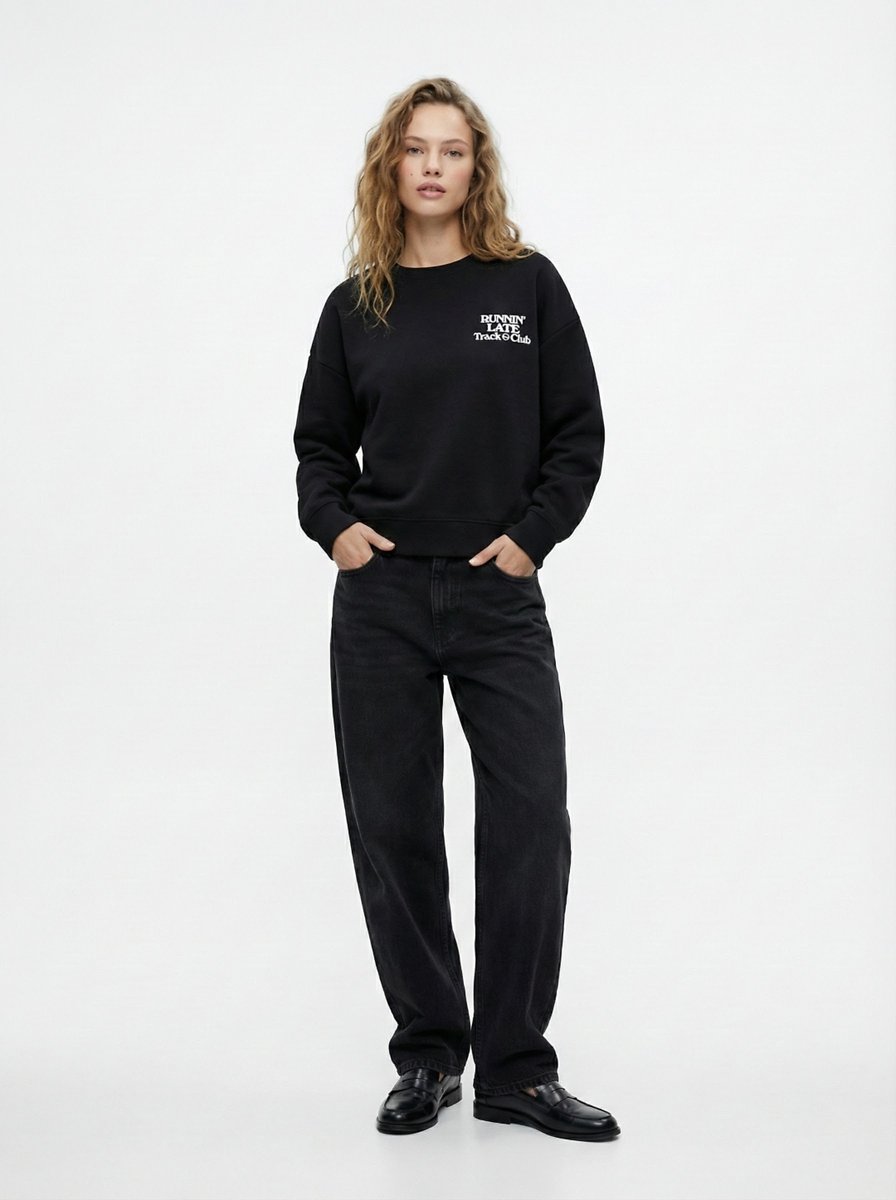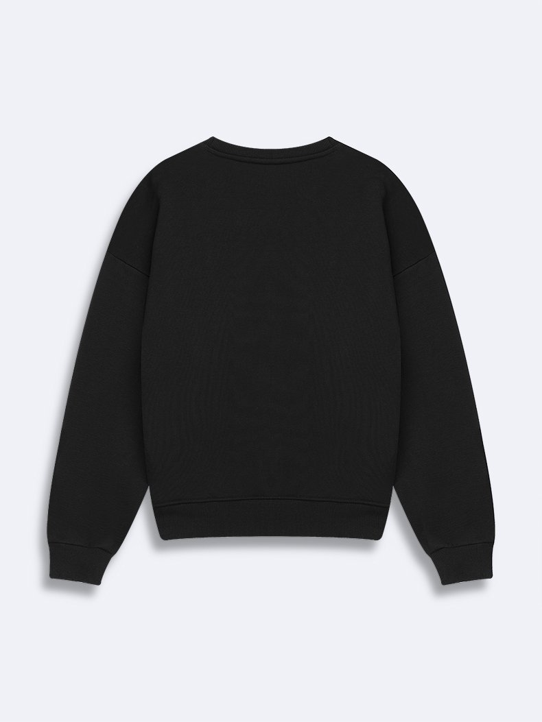 Uzun Kollu Sıfır Yaka Slogan Baskılı Siyah Sweatshırt