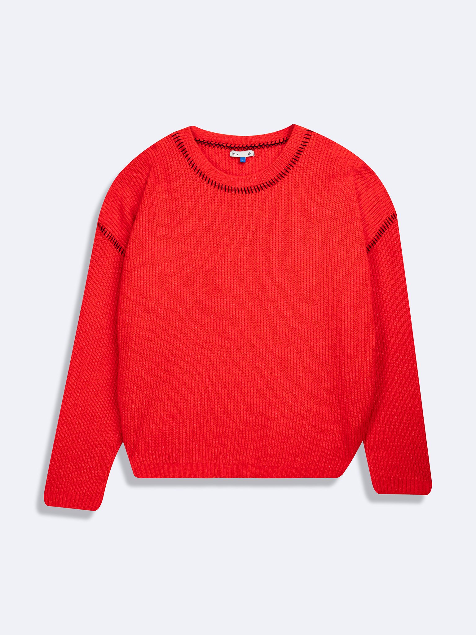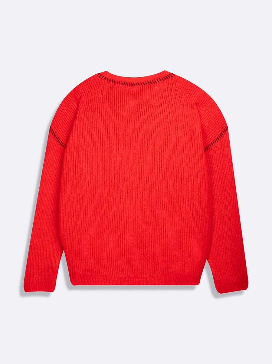 Uzun Kollu Sıfır Yaka Triko Kırmızı Kazak