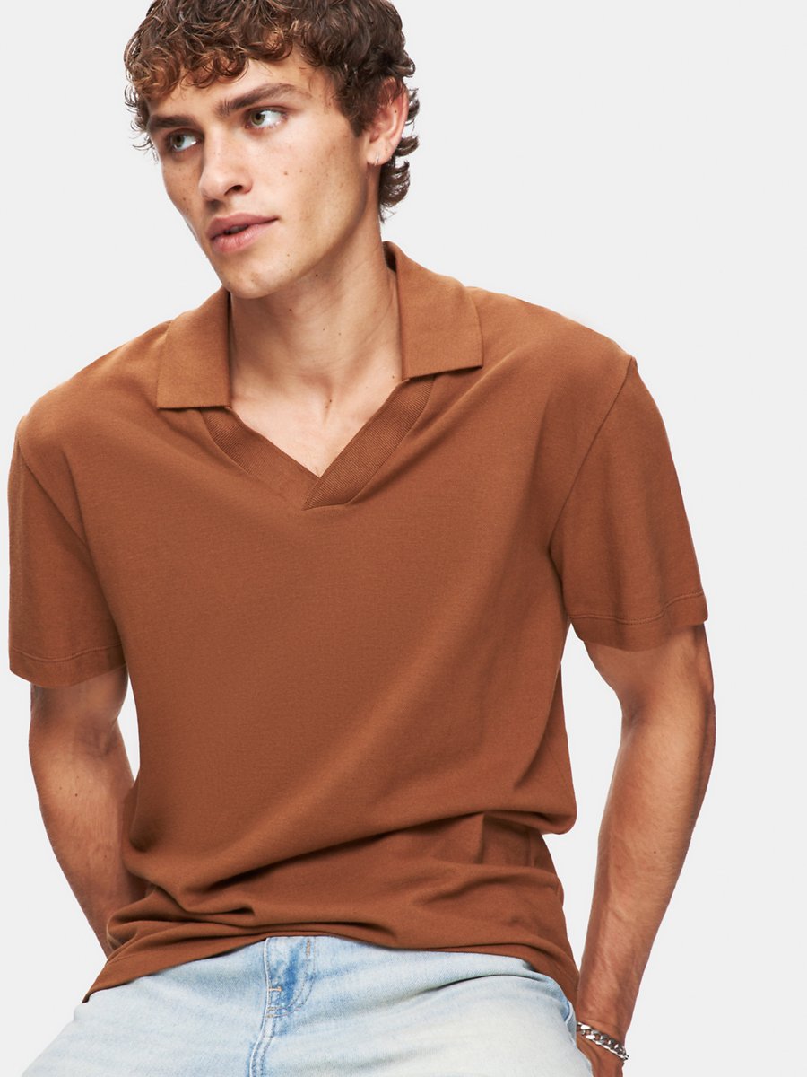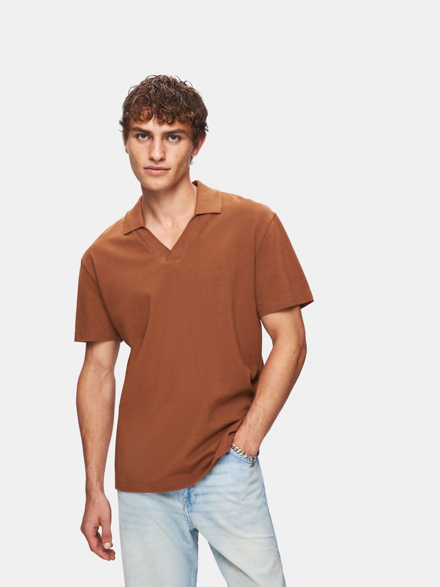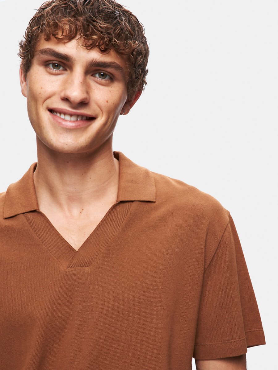 V Yaka Pike Polo Yaka Kahverengi T-shırt