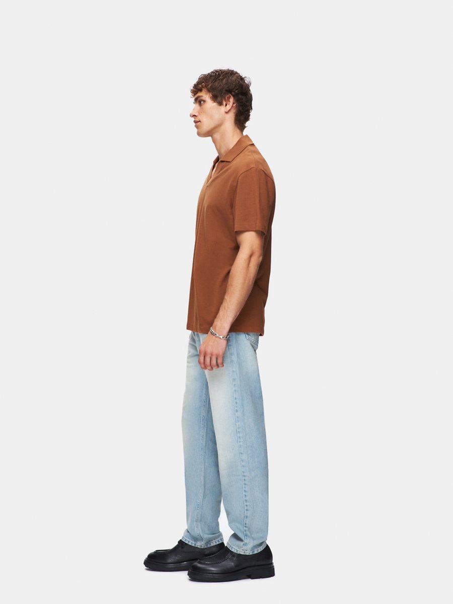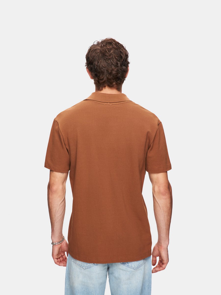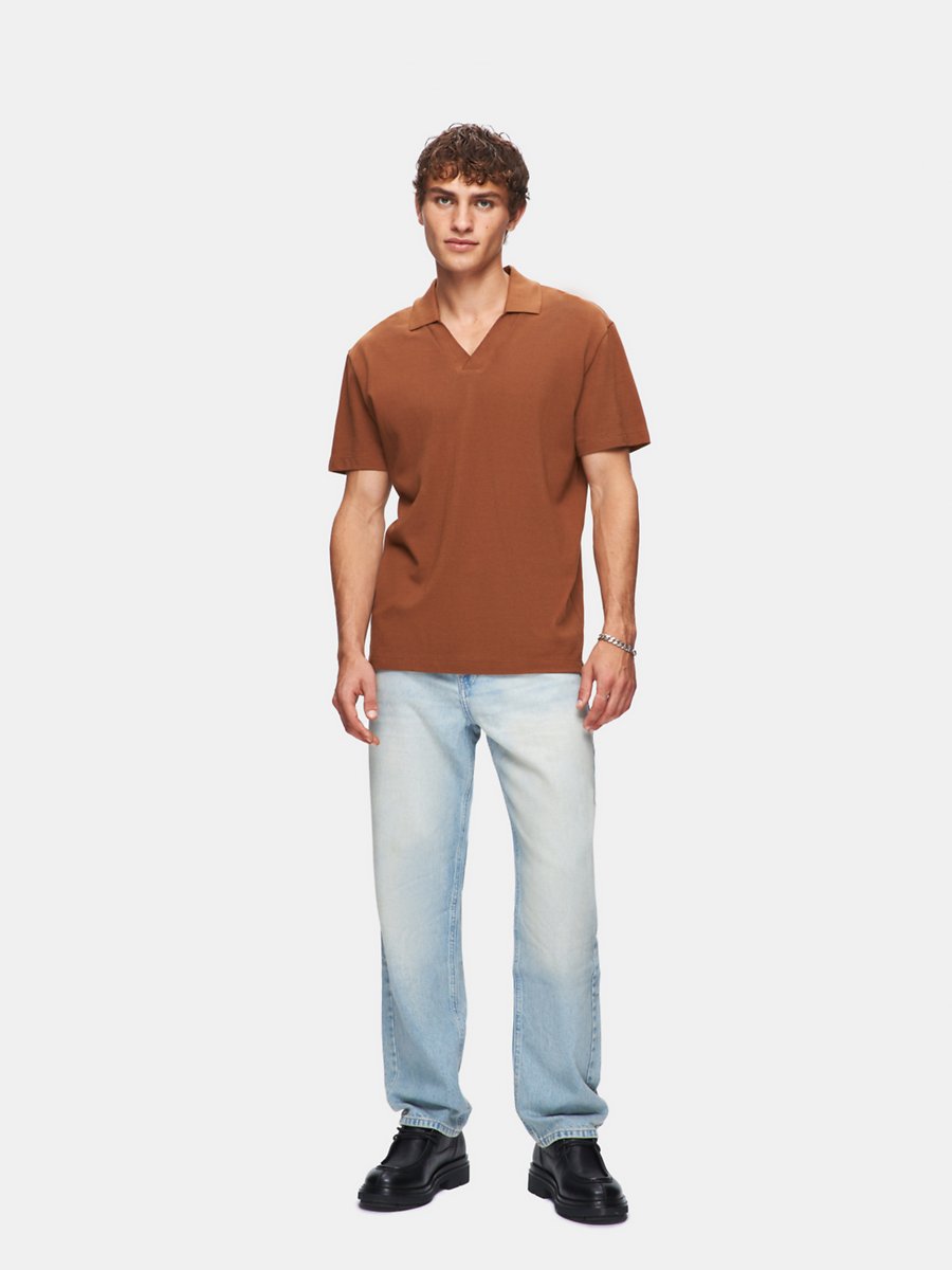 V Yaka Pike Polo Yaka Kahverengi T-shırt