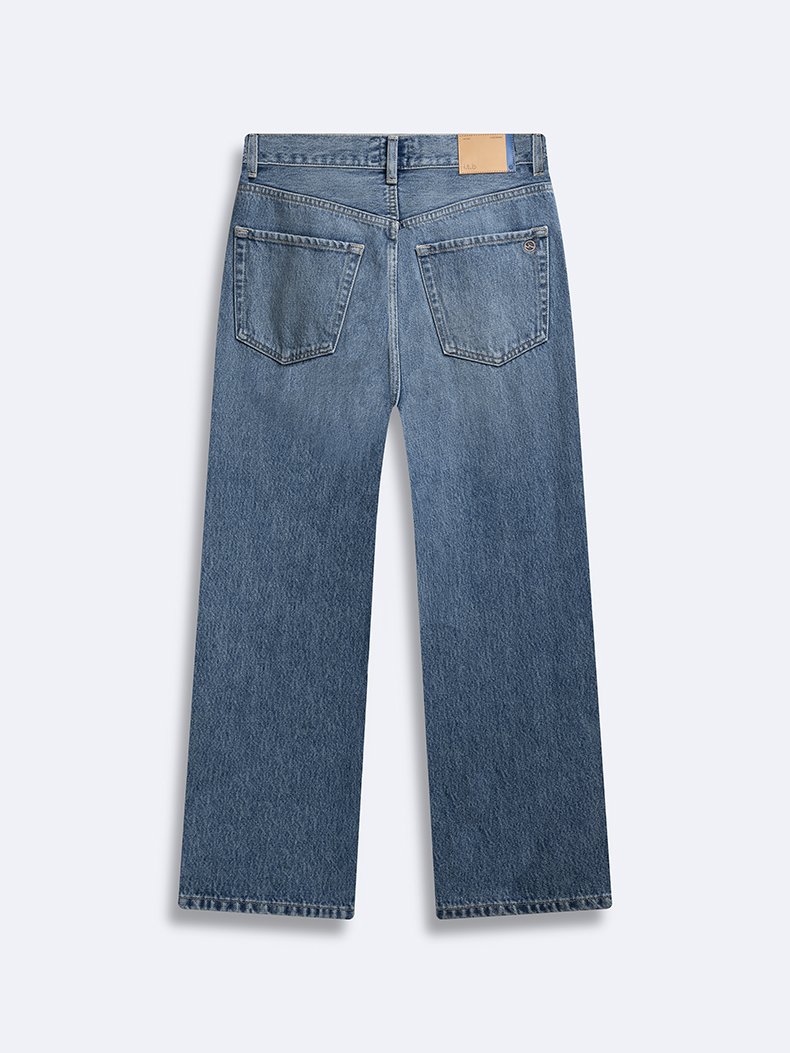 Vıenne Yüksek Bel Düz Paça Orta Mavi Jean Pantolon