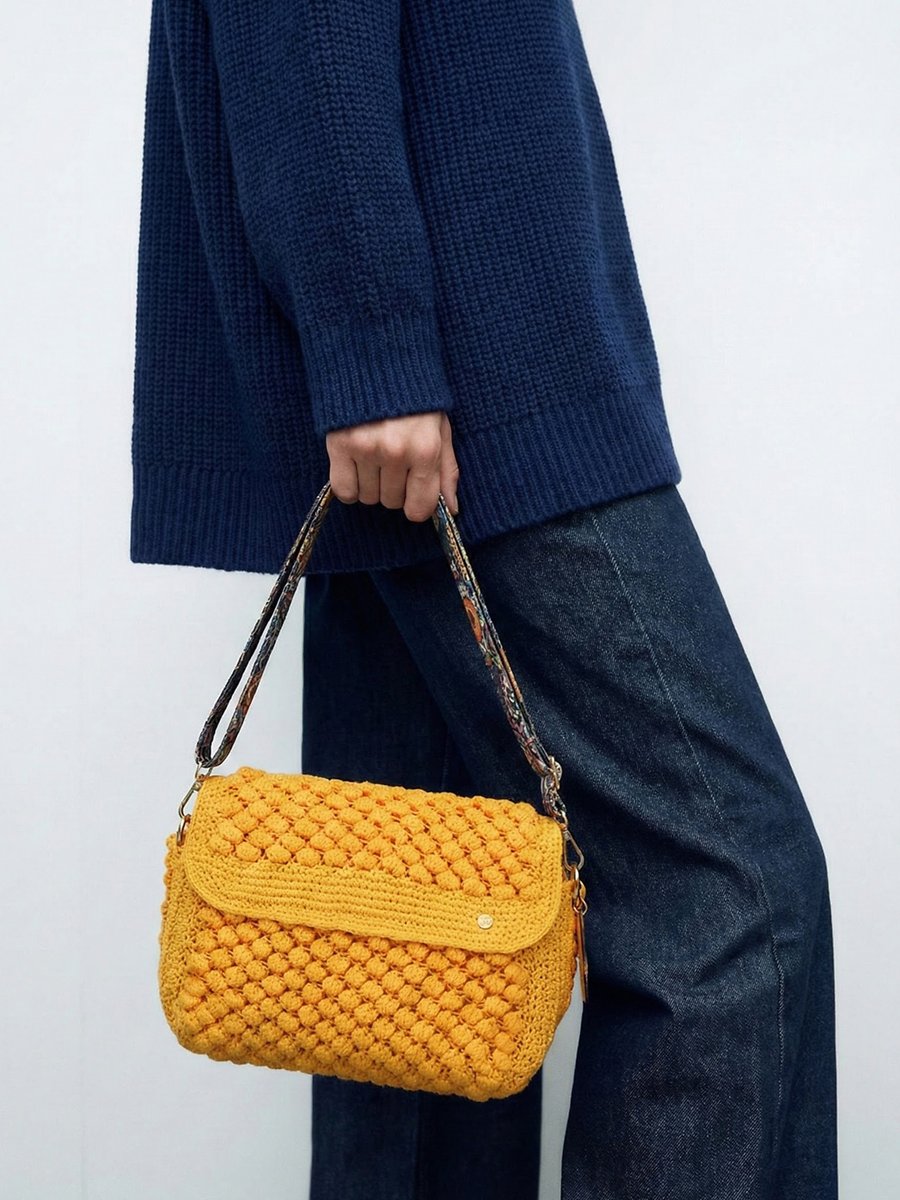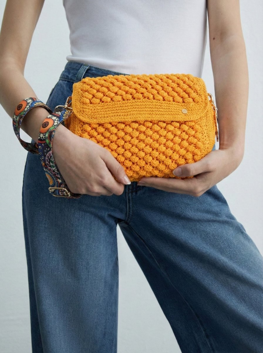Turuncu Handmade El Örgüsü 28x17x7 Cm Çanta