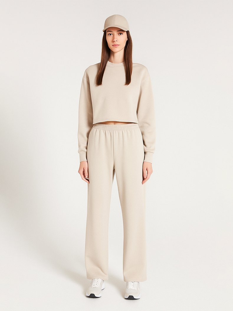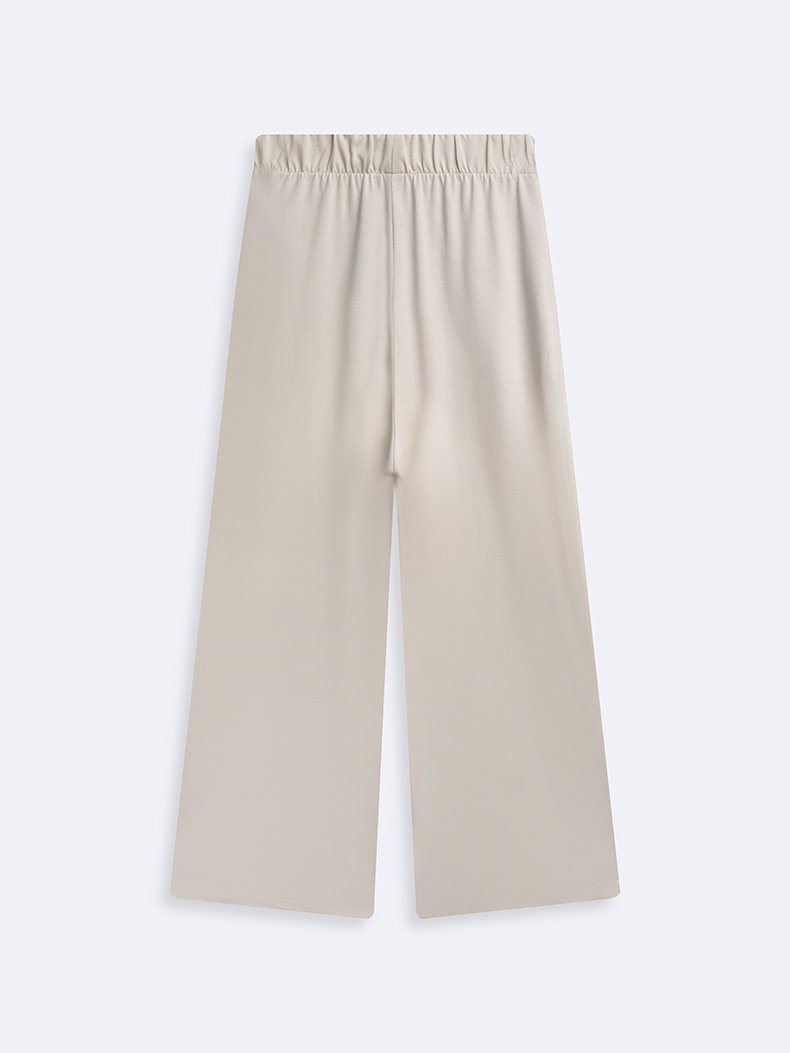 Beli Lastikli Düz Kesim Krem Pantolon