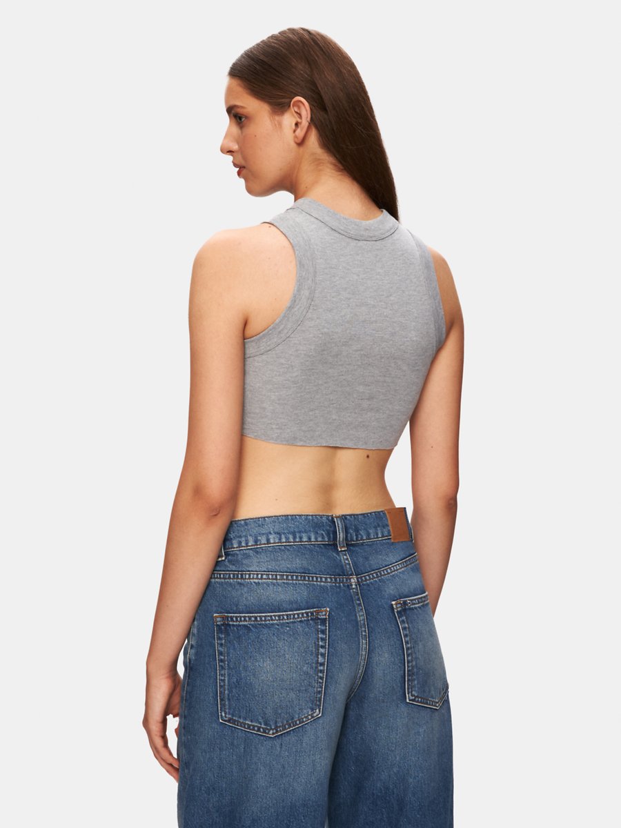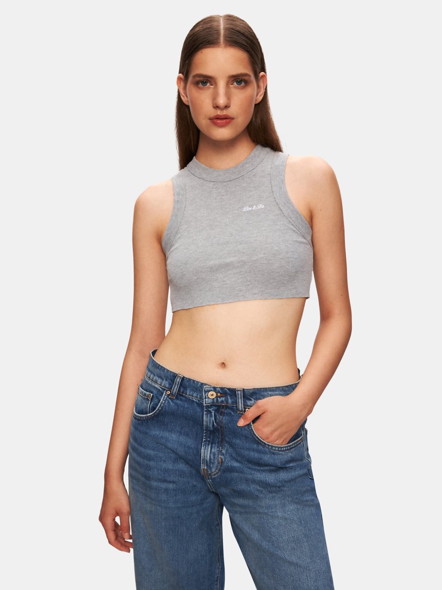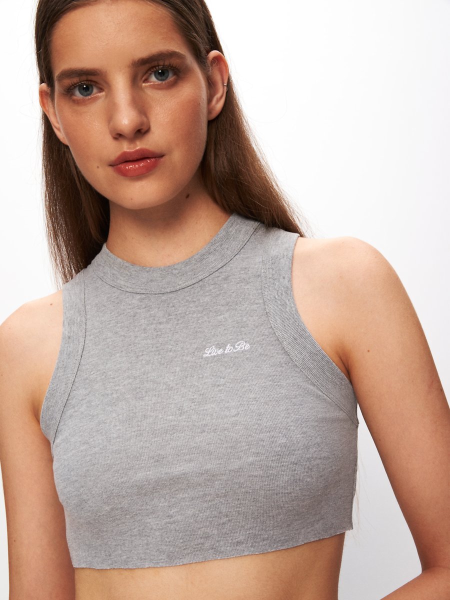 Mouwen Met Manchetten Sloganprint Basic Crop Grıjs Atleet